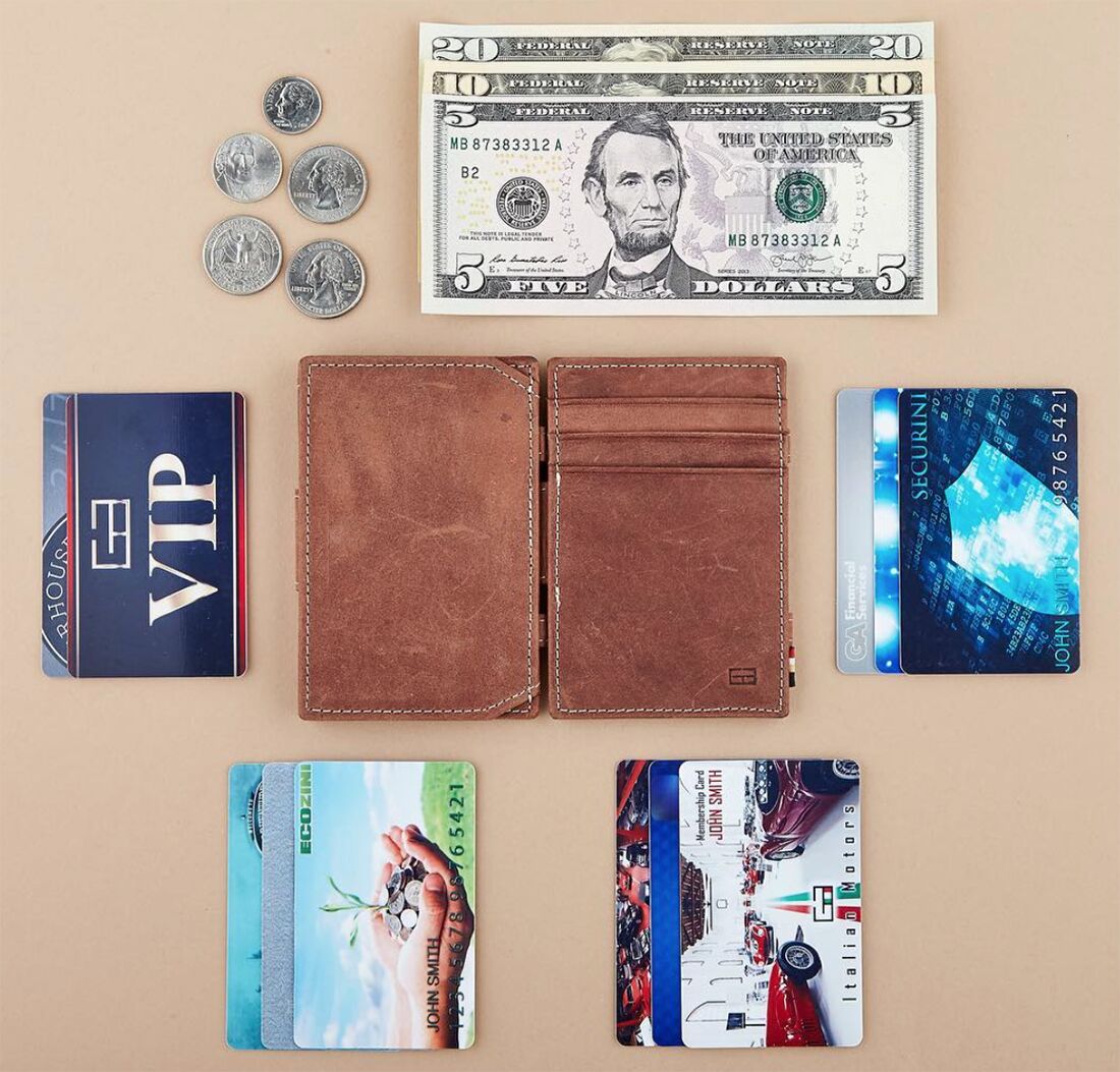 접거나 펼치면 보여지는 형태가 바뀌는 구조로, 지폐나 종이는 실제로 제자리에 있는데 지폐가 움직인 것 같은 착시현상을 가져와서 Magic System 이라고도 합니다. 빠르고 손쉽게 지폐나 영수증을 지갑에 넣고 뺄수 있어 시간을 절약할 수 있습니다.