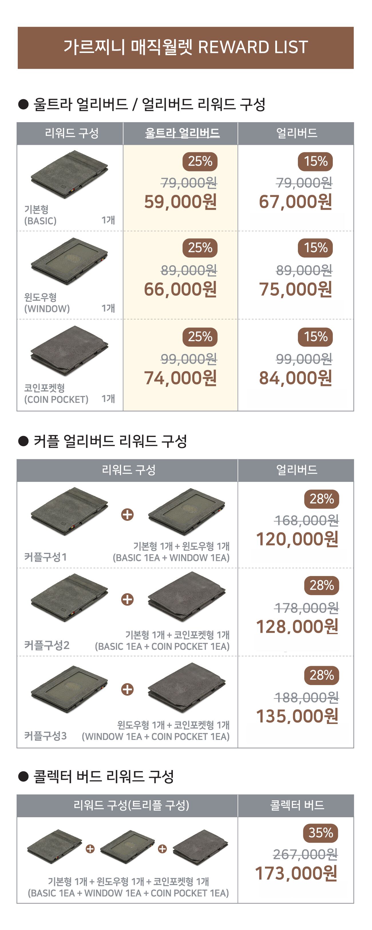 가르찌니 매직월렛 기본형 (Basic) 기준 72,700원