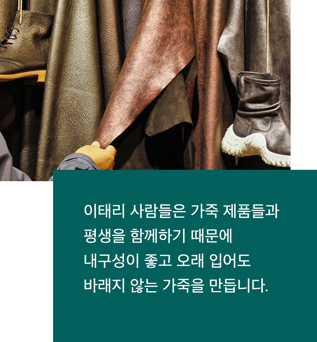 ‘이탈리아 문화의 아름다움과 디테일로부터 영감을 받아서 작업하기 때문에, 여러 세대를 거쳐 전해온 장인의 기술력과 노하우를 바탕으로 모든 세부 공정을 처리합니다. 이탈리아의 아름다운 가치를 제공하겠습니다.’ 라는 내용입니다.