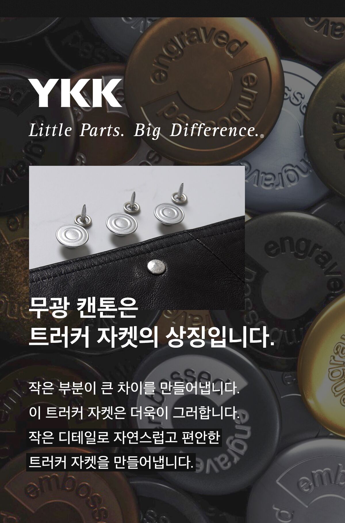 YKK 무광 캔톤 단추는 거친 트러커의 자연스러움을 살려줍니다.