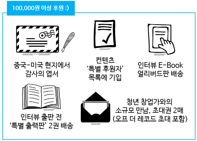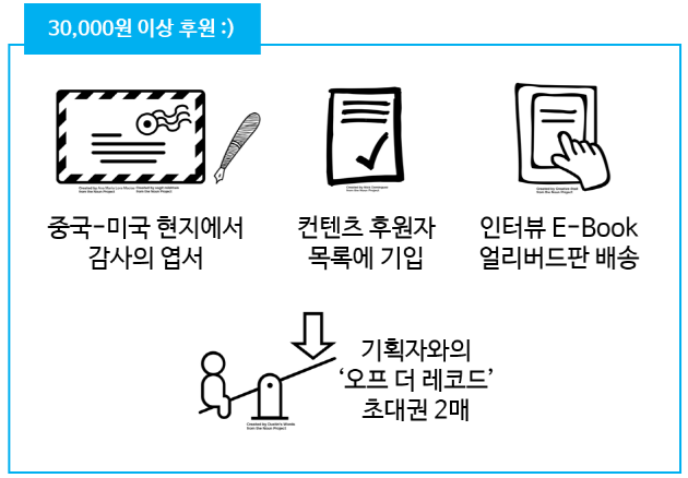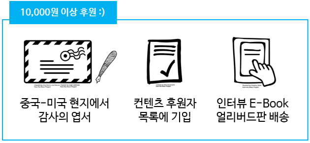 2. 인터뷰 진행 후 생산되는 컨텐츠에 후원자의 이름이 '특별 후원자'로 기입됩니다!