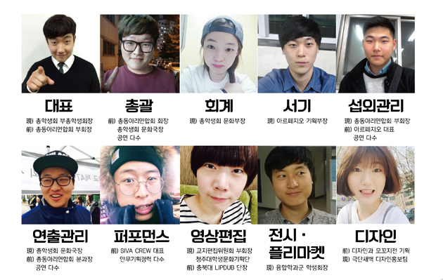 2014년부터 활동을 시작한 '충동'은 「젊음, 소리, 문화를 하나로」 라는 슬로건 아래 충북대학교 중문지역 문화활성화를 위해 손을 맞잡은 문화기획 CREW입니다.