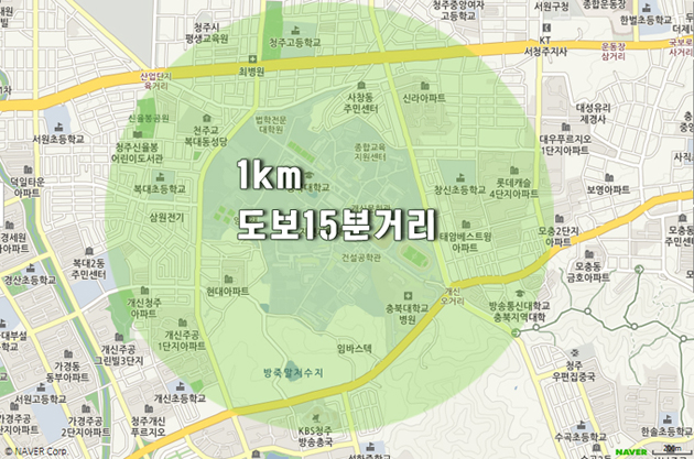 1KM = 도보 15분, 문화 시설은 단 3곳
