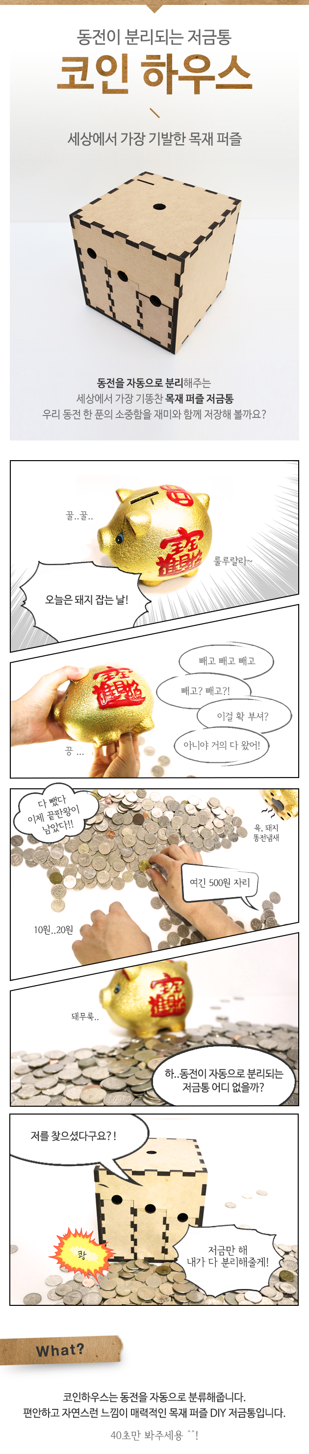 A clever wooden puzzle piggy bank that sorts coins automatically. Let’s save every coin with fun and care!