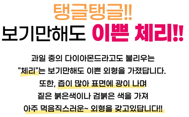 탱글탱글 달콤한 체리~ 어떤 과일이든 원물로 먹어야 제 맛이라는 말이 있는데요. 체리도 마찬가지!!