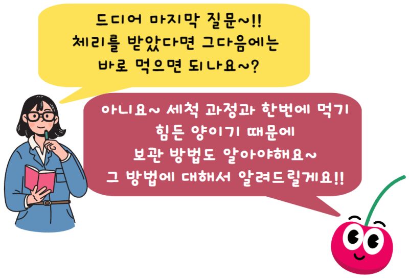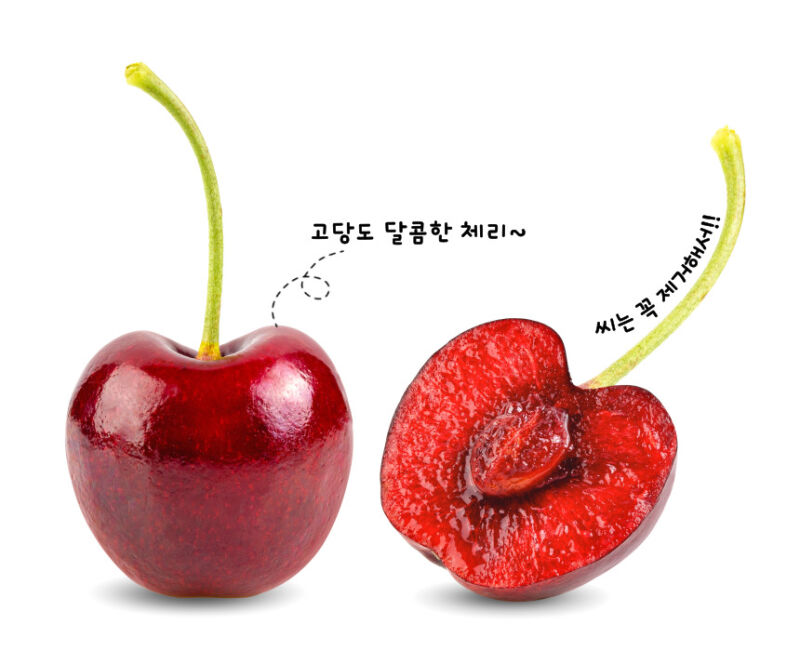 한 입에 쏘옥~ 들어가는 체리지만 꼭 씨는 뱉어주세요~!! 과육만 드셔야해요!!