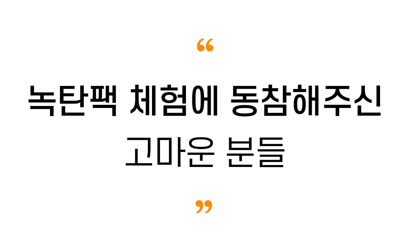 세상에 없던 제품을 내놓는 일이었기에 SNS를 통해 사람들과 녹탄팩의 생산부터 개발 과정까지 소통하기 시작했고, 그곳에서 만난 고마운 분들은 녹탄팩을 먼저 체험해 주셨습니다!