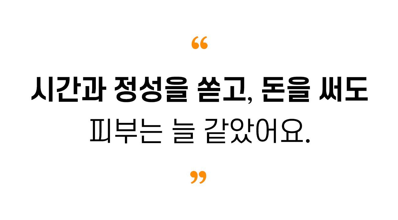 그때부터 저는 좋은 피부에 집착했고, 유명하다는 피부관리를 받으며 노력했지만 결국은 모두 실패했습니다.
