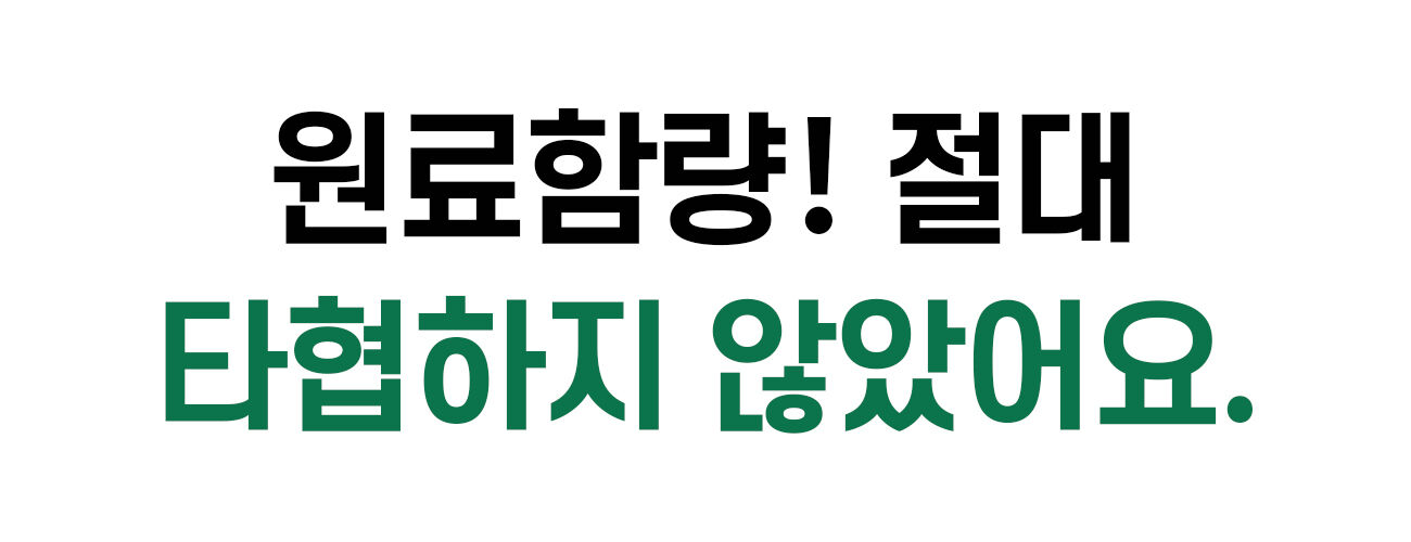 압도적인 원료 함량과 자연유래 성분 배합을 고집스럽게 포기하지 않았고, 10여개가 넘는 제조사를 만나, 수많은 거절을 받았습니다.