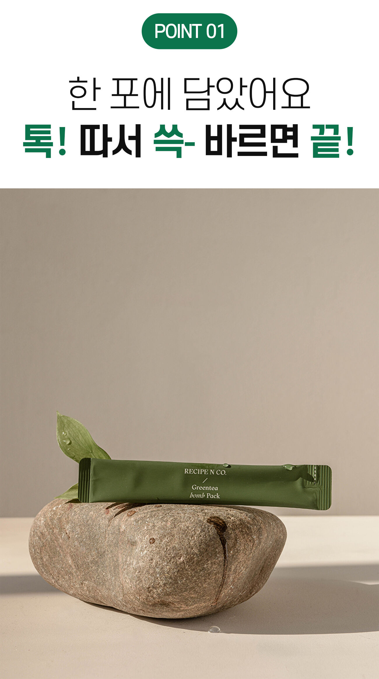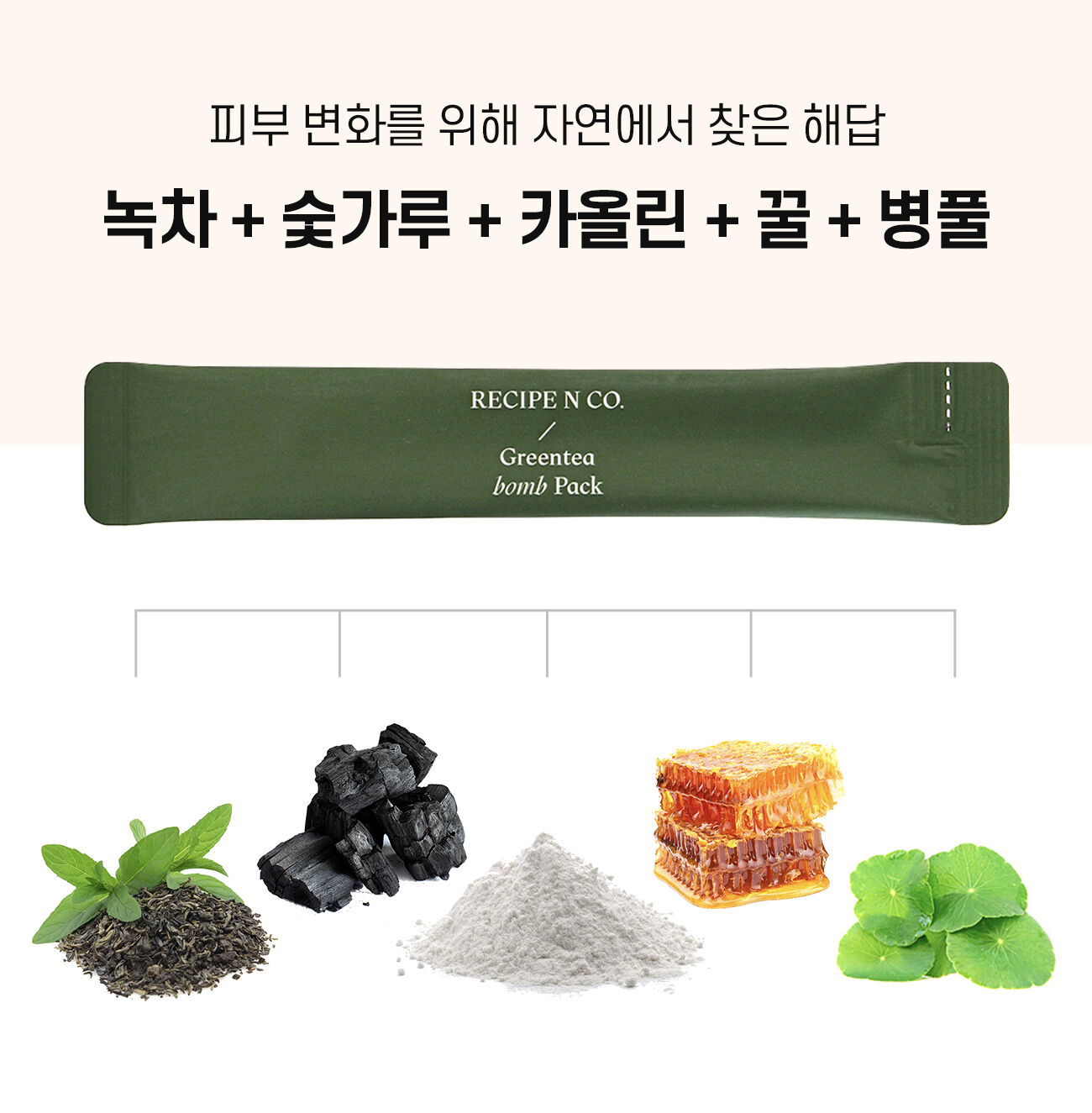 ⚠ 레시피앤코 녹탄팩은 자연을 담기 위해 노력합니다. 자연에서 얻어진 귀한 원재료의 특별함을 그대로 담다보니 향취나 색상의 편차, 물분리 현상이 발생할 수 있으나 제품에는 이상이 없으니 안심하고 사용하세요.