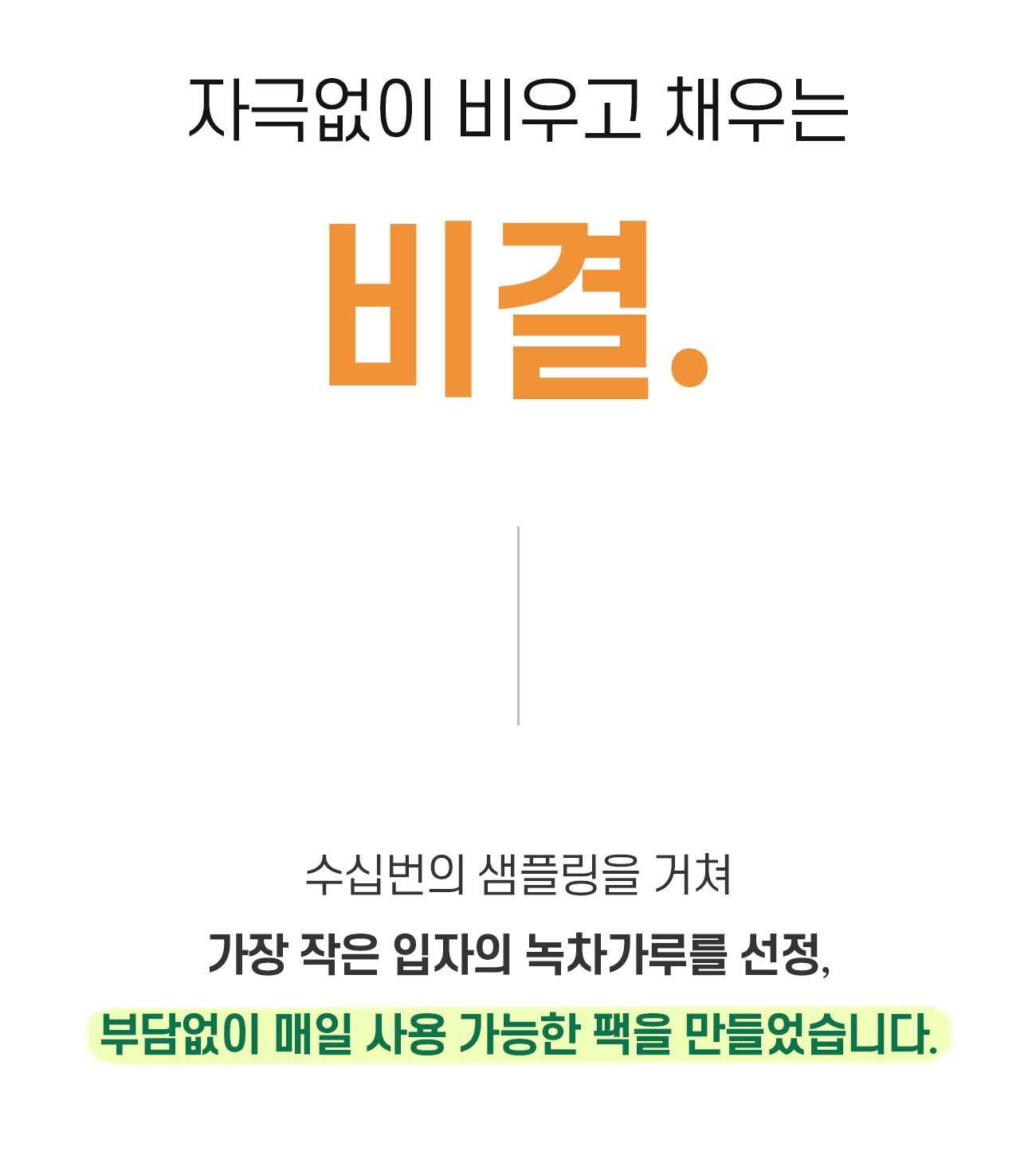 예로부터 이어온 좋은 재료로 확실히 비워내고, 건강하게 채우기 위해 고운 유기농 녹차가루를 듬뿍 넣었습니다!