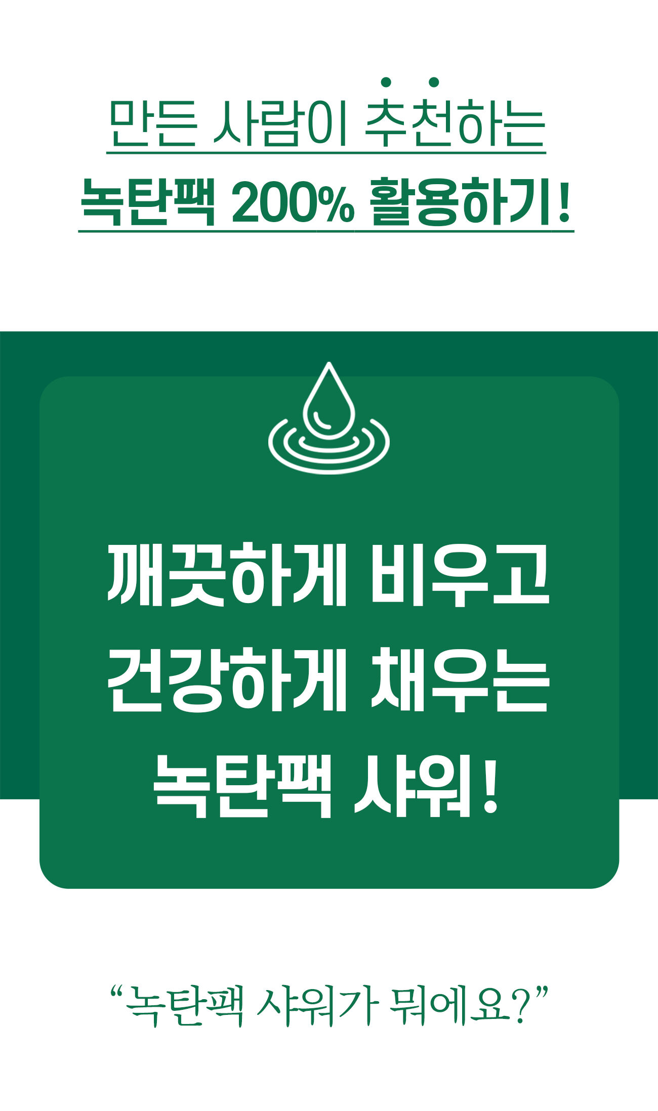 클렌징 후 녹탄팩을 발라주고 샤워하세요!