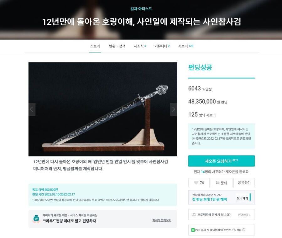 *본 프로젝트의 펀딩금은 추후에 우리나라의 명검을 미니어처로 제작하는 프로젝트에 사용될 예정입니다.