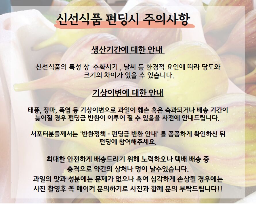 무화과는 열에 약한 과일이기 때문에 수령후에는 꼭 냉장 보관을 해주셔야해요!!