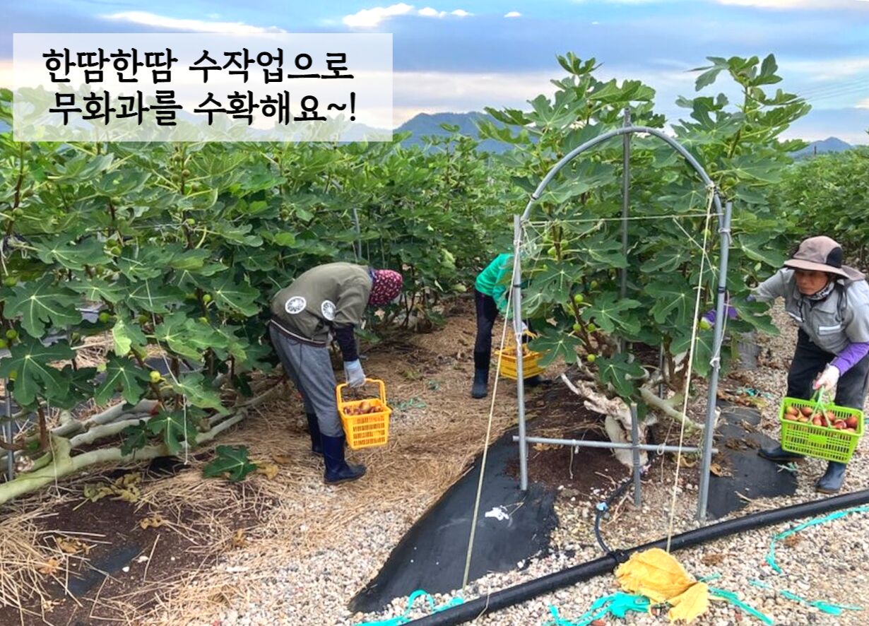 농부님들이 무화과나무 1수 1수를 지나면서 상품성이 좋은 무화과만 골라골라 수확을 하고 계신답니다.