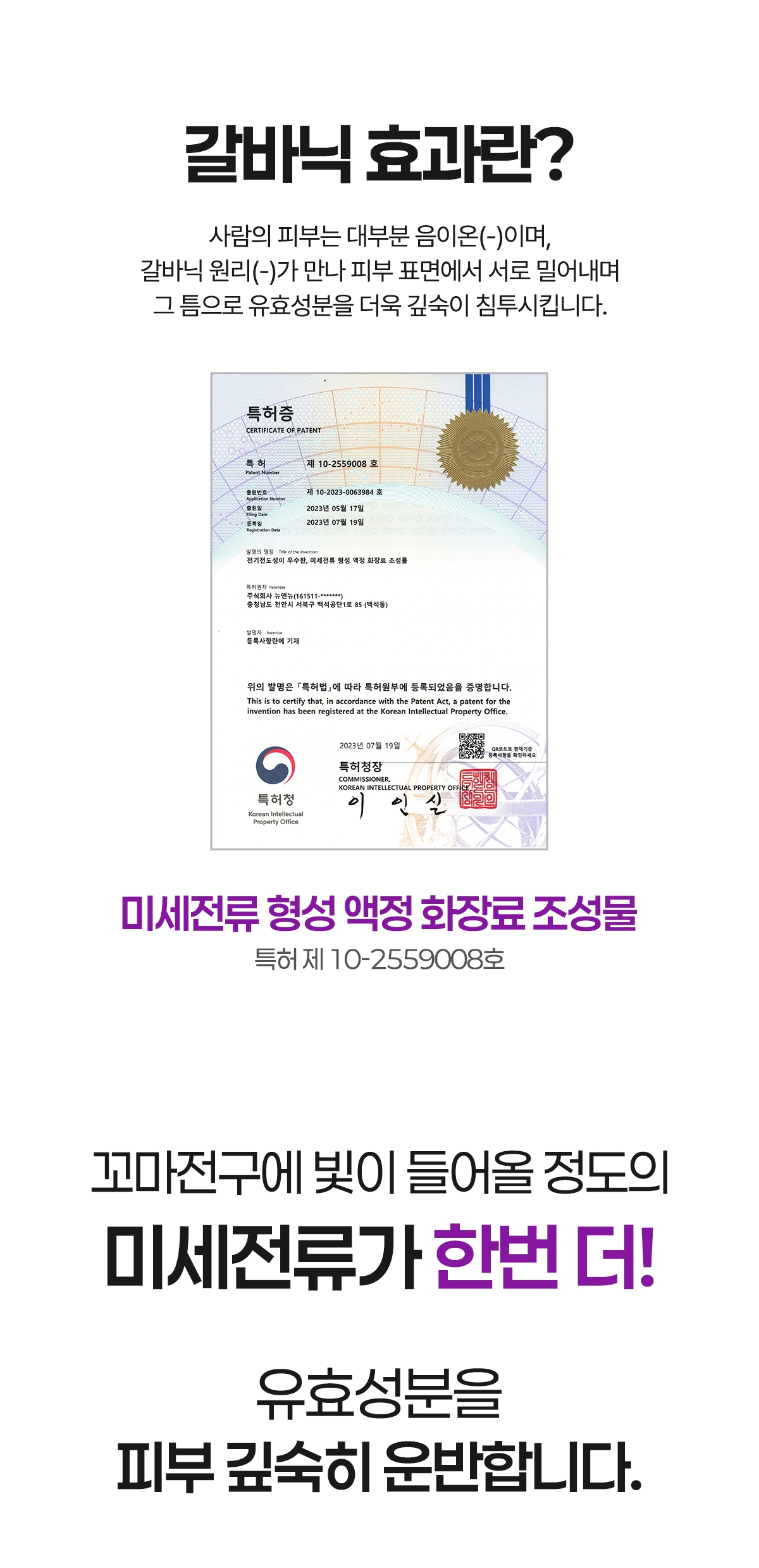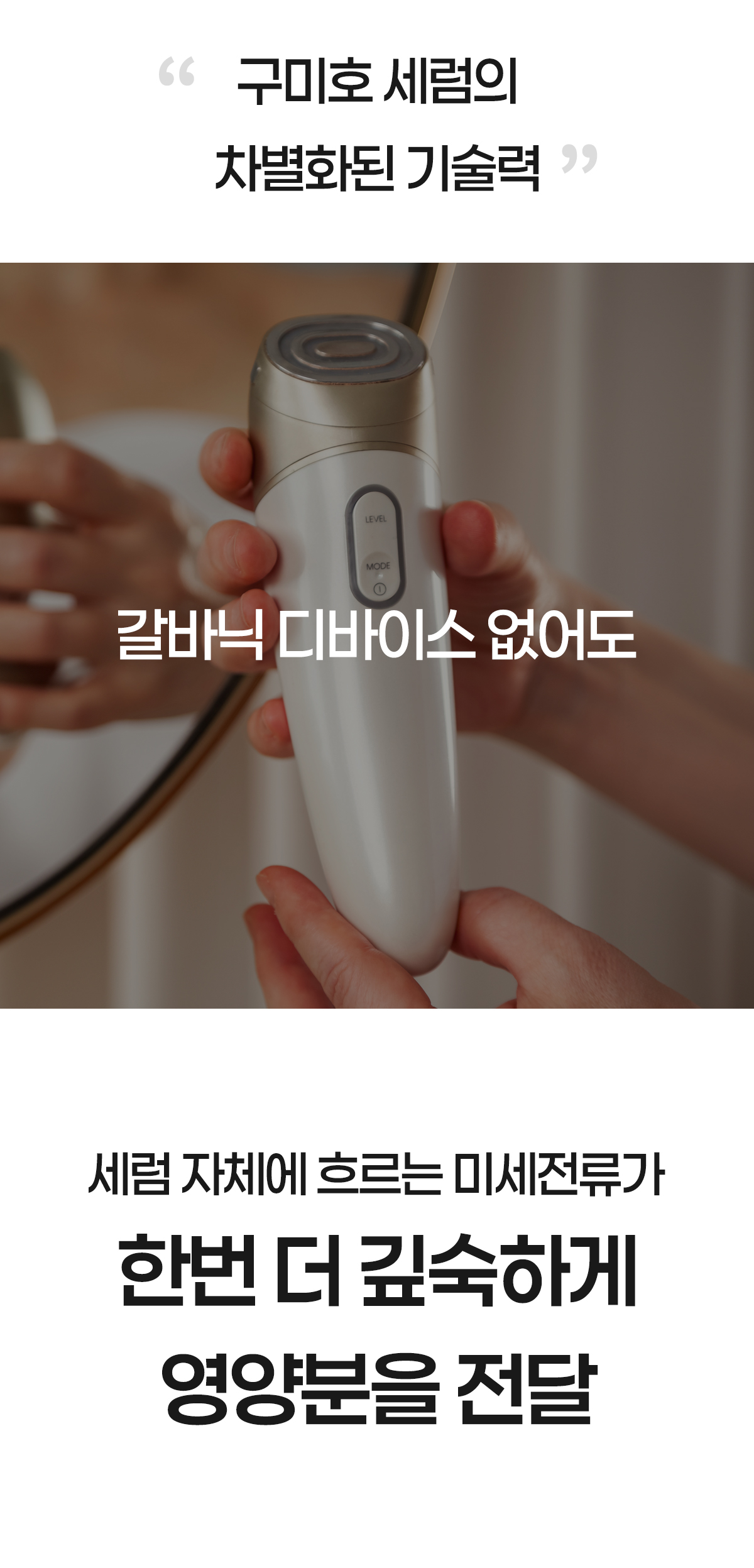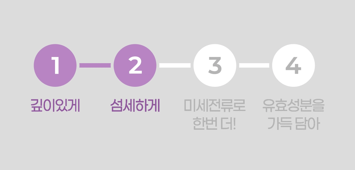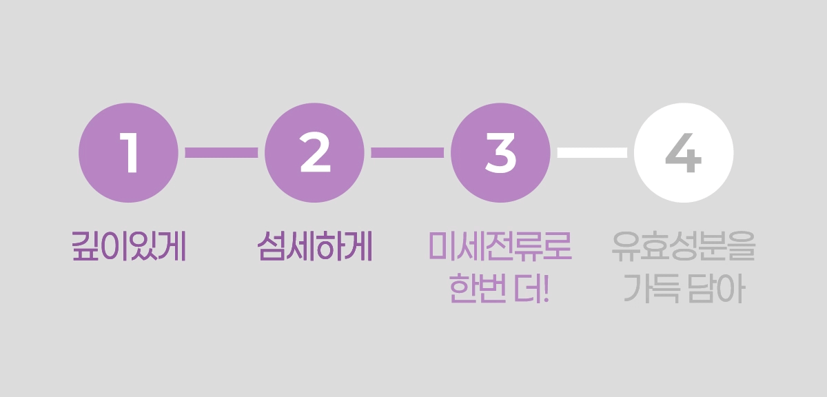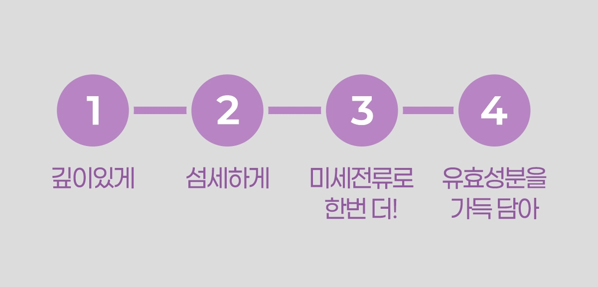 저전압의 갈바닉 전류를 이용하여 영양성분을 전달하고, 피부의 혈액순환과 세포를 촉진하는 데 도움을 주어
