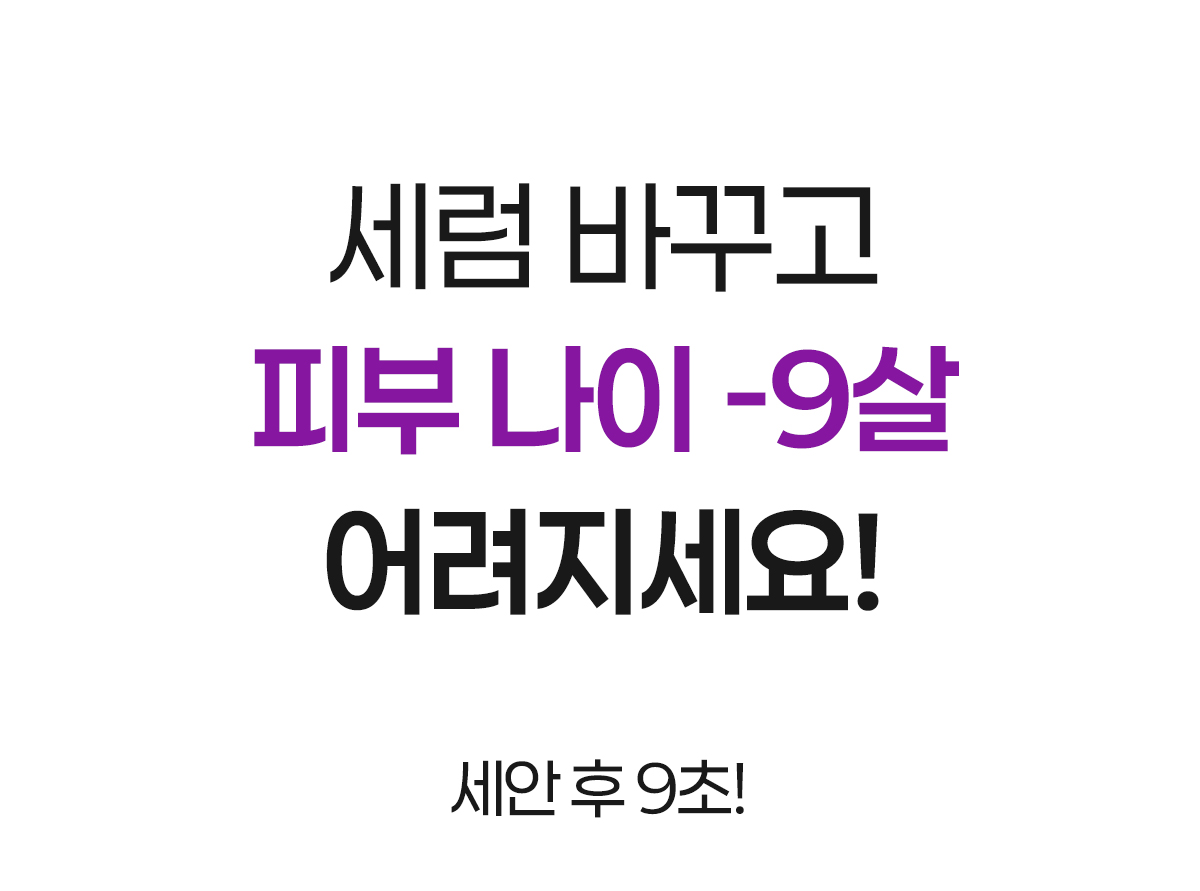 누구보다 빠르게 가장 먼저, 피부 나이 지수 -9살의 효과를 누려보세요 :)
