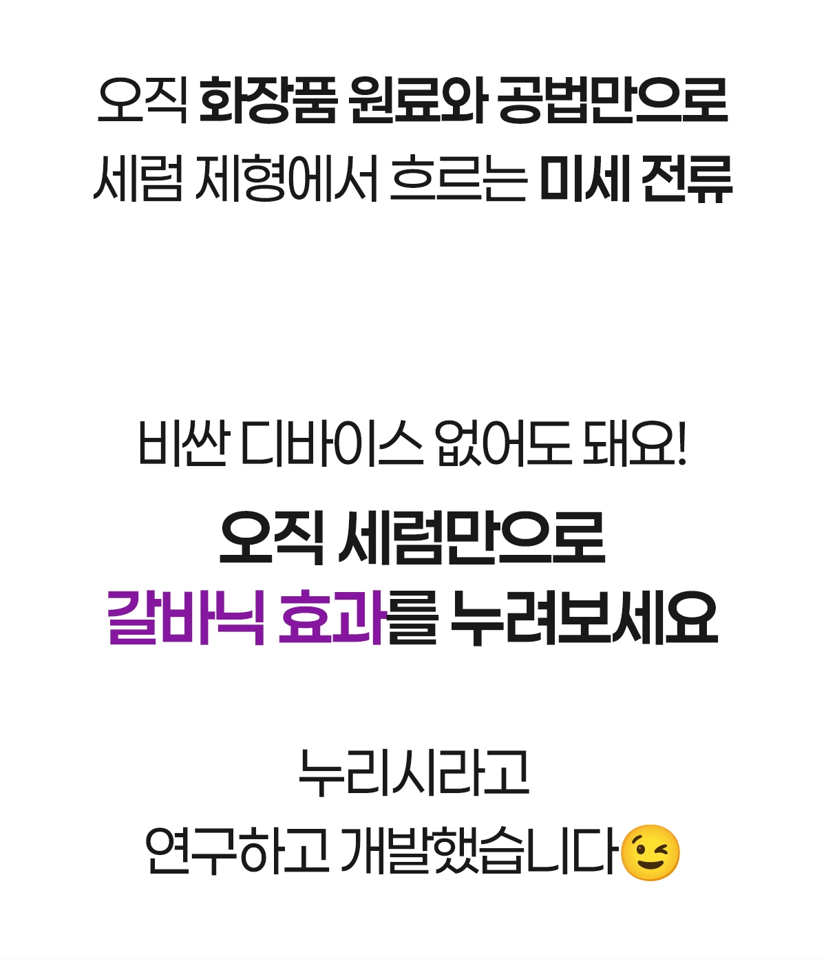 #구미호세럼은 피부에 바른 후 흡수시키듯 두드리면 비싼 갈바닉 기기 없이도 미세 전류가 생성되는 기능성 세럼으로 피부에 미세 전류를 발생시켜 세럼의 주요 성분을 깊숙이 전달해줍니다. 전기를 연결시켜 미세 전류를 발생시키는것이 아닌 제형을 발라 두드리는 압력에 의해 생기는 미세 전류라 기계가 닿기 어려운 부위도 구석 구석 사용의 편리함을 느낄수 있습니다.