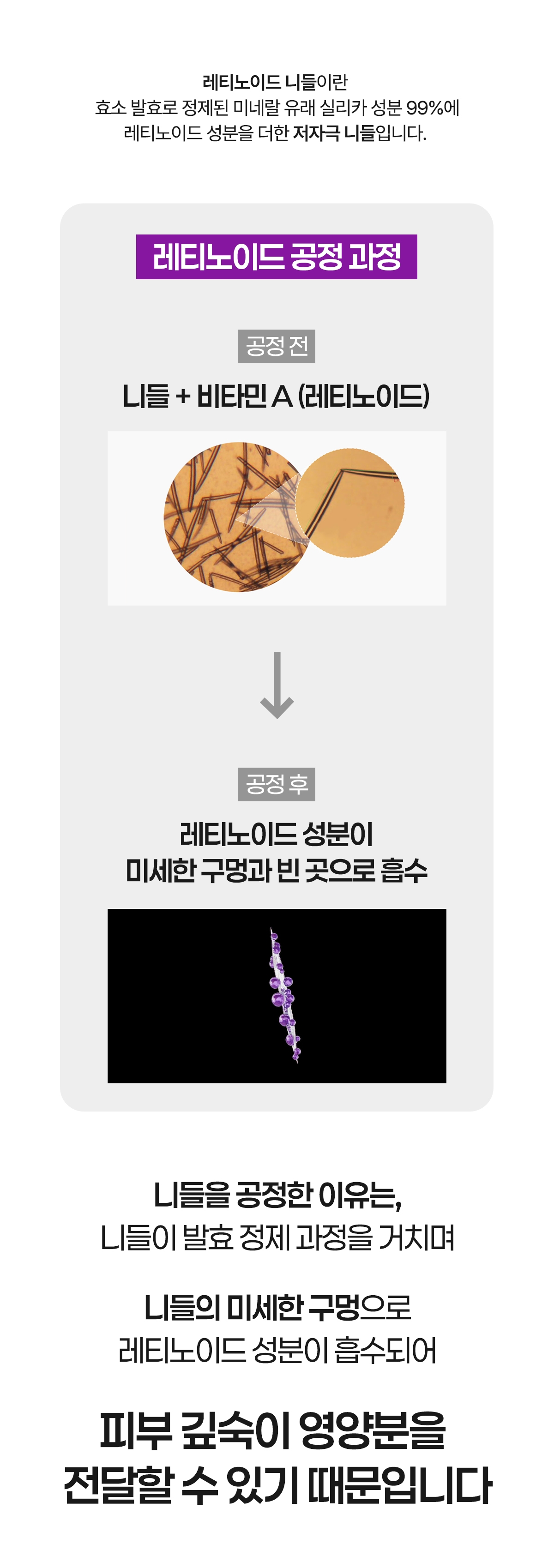 레티놀 하면 모두 프리미엄 성분인거 아시죠? 일단 레티노이드 성분을 니들(스피큘)에 코팅하는데 성공!