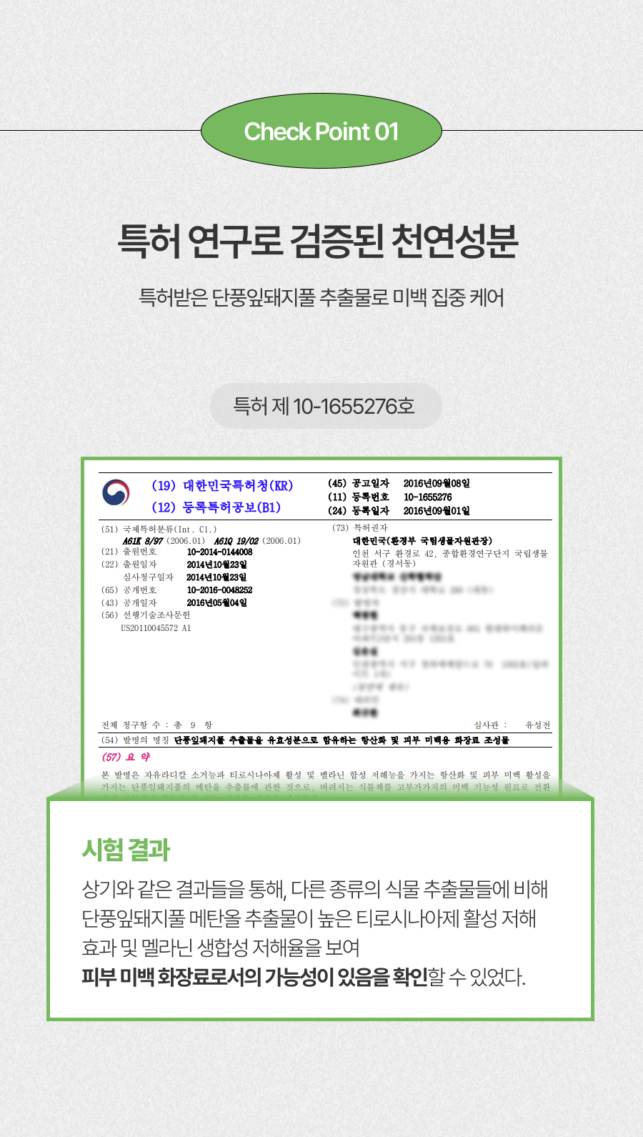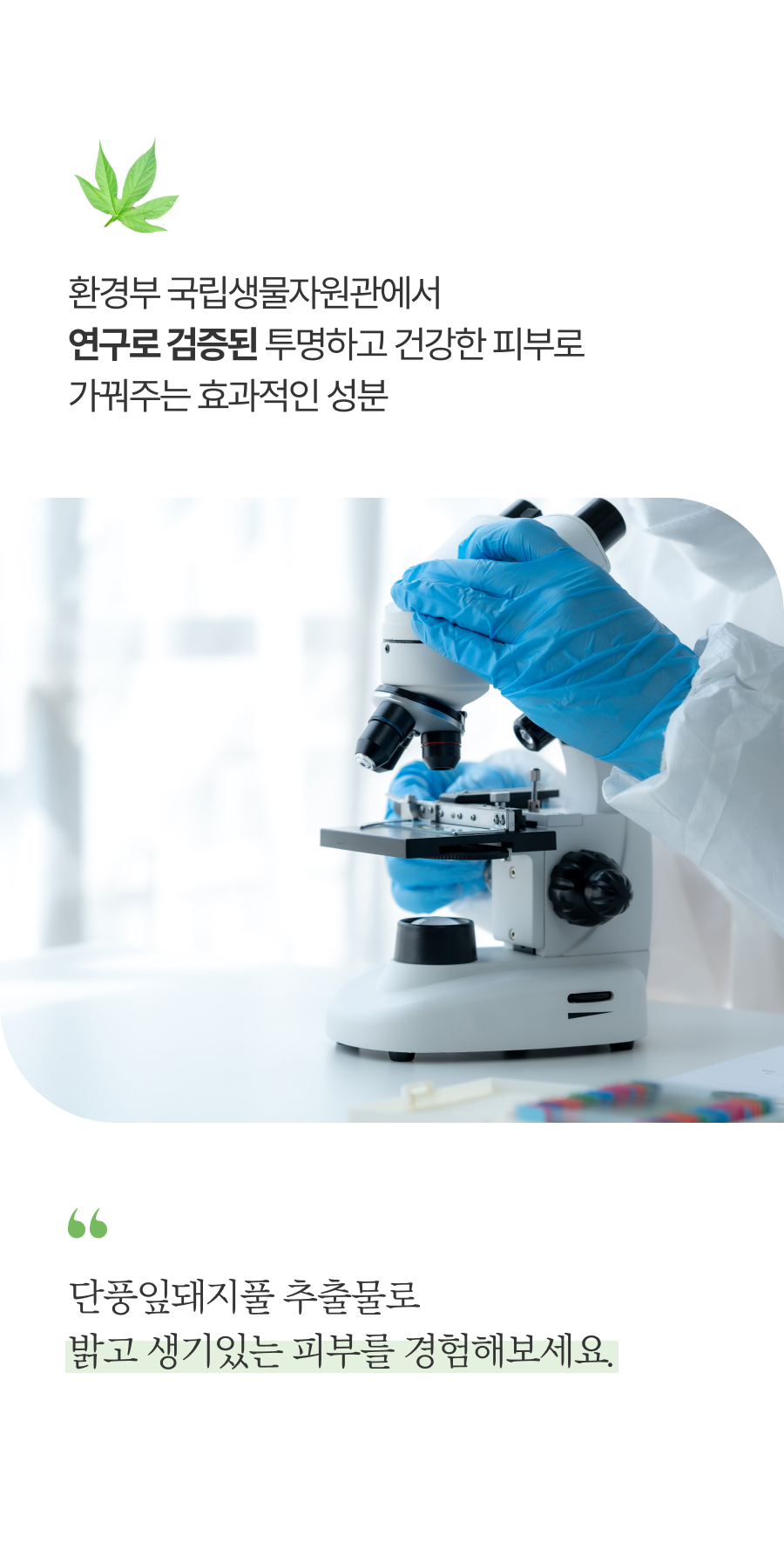 ‘세상에 버려지기 위해 태어나는 생명은 없다’는 가치관 하에, 생태계 교란 식물이라는 이유로 제거되는 단풍잎돼지풀에 새로운 가치를 부여하고 싶었습니다. 이에 국립생물자원관의 연구를 바탕으로 단풍잎돼지풀의 가능성을 현실화하여 미백 기능성 앰플로 업사이클하였습니다.