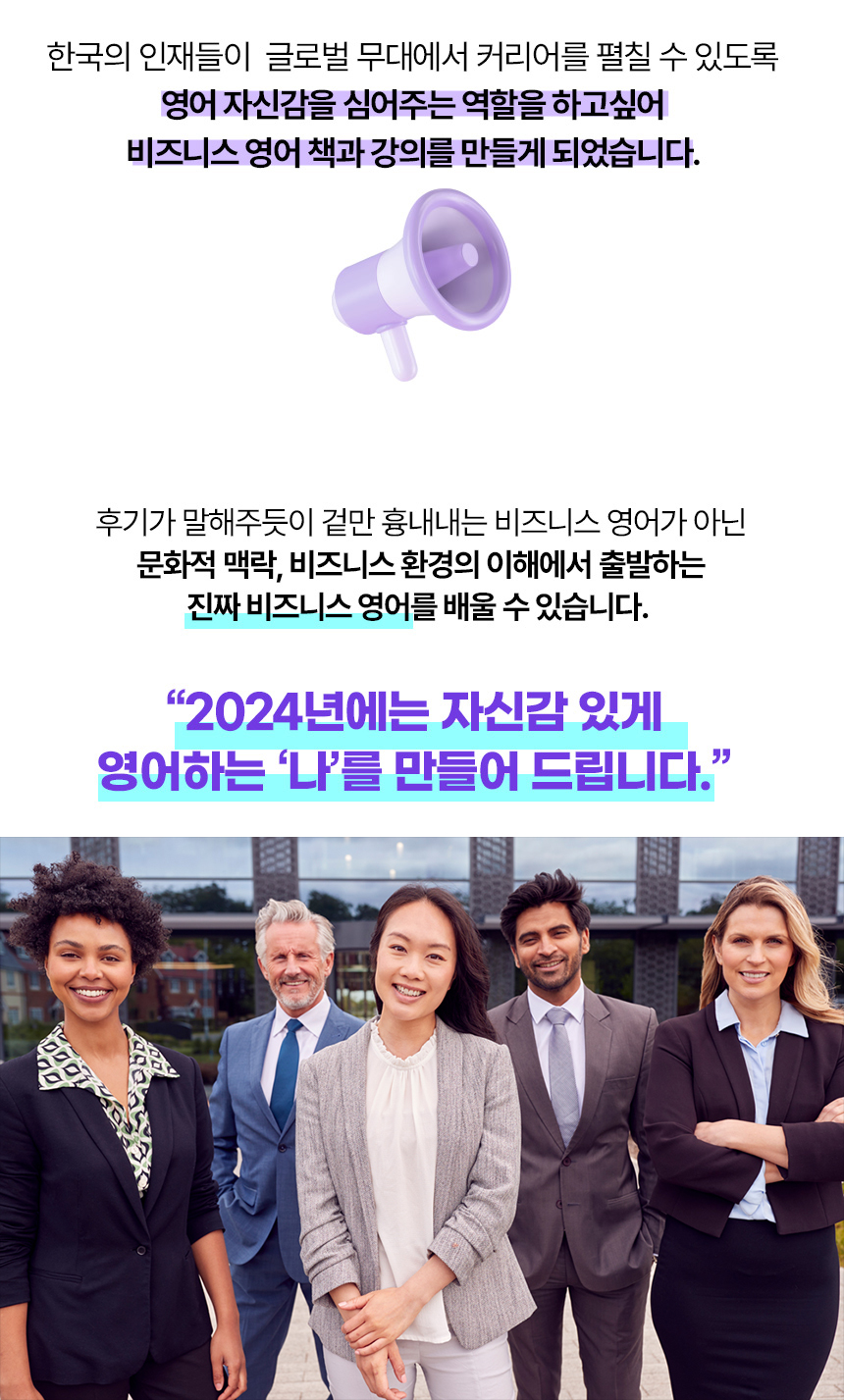 한국에는 성실함과 재능을 지닌 뛰어난 인재가 많습니다. 그럼에도 불구하고 영어 때문에 글로벌 기업 이직의 기회를 놓치거나 국내에 한정해 커리어를 고민하며 답답해하는 분들을 종종 만나왔습니다. 저는 비즈니스 영어를 커리어 성장의 측면에서 접근해왔습니다. 어제도 사용했던 표현, 뉘앙스가 살아 있는 표현, 커리어 성장에 대한 팁을 책과 강의에 담아 마치 유능한 사수가 영어 과외를 해주 듯 다가가고 싶었습니다. 한국의 능력 있는 인재들이 성공적인 글로벌 커리어 도약을 할 수 있도록 실전 지식과 경험을 녹여 리워드를 준비했습니다. 저의 프로젝트를 효과적으로 알리고 판매할 수 있는 최적의 플랫폼으로 와디즈를 선택해 펀딩을 진행하게 되었습니다.
