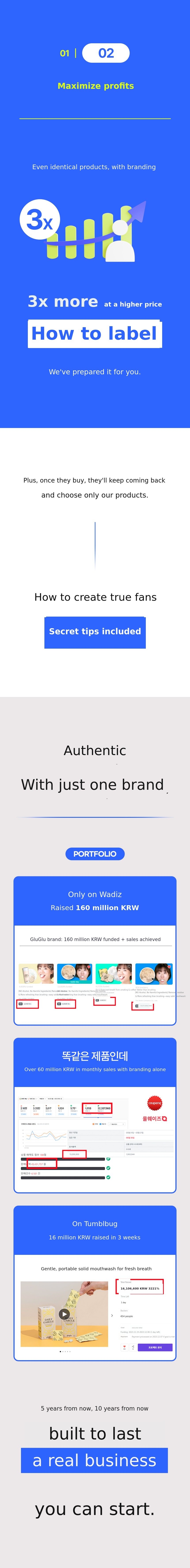 Currently running a brand with monthly sales of 70 million won, spending 10 million won per month on advertising, and have succeeded in raising over 160 million won on Wadiz alone.