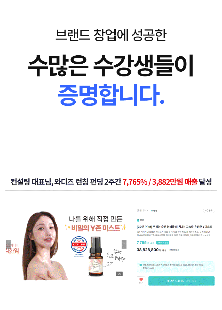I chose Wadiz because I wanted to share the excitement of students truly starting and transforming their own brands, not just running a ‘profitable class.’