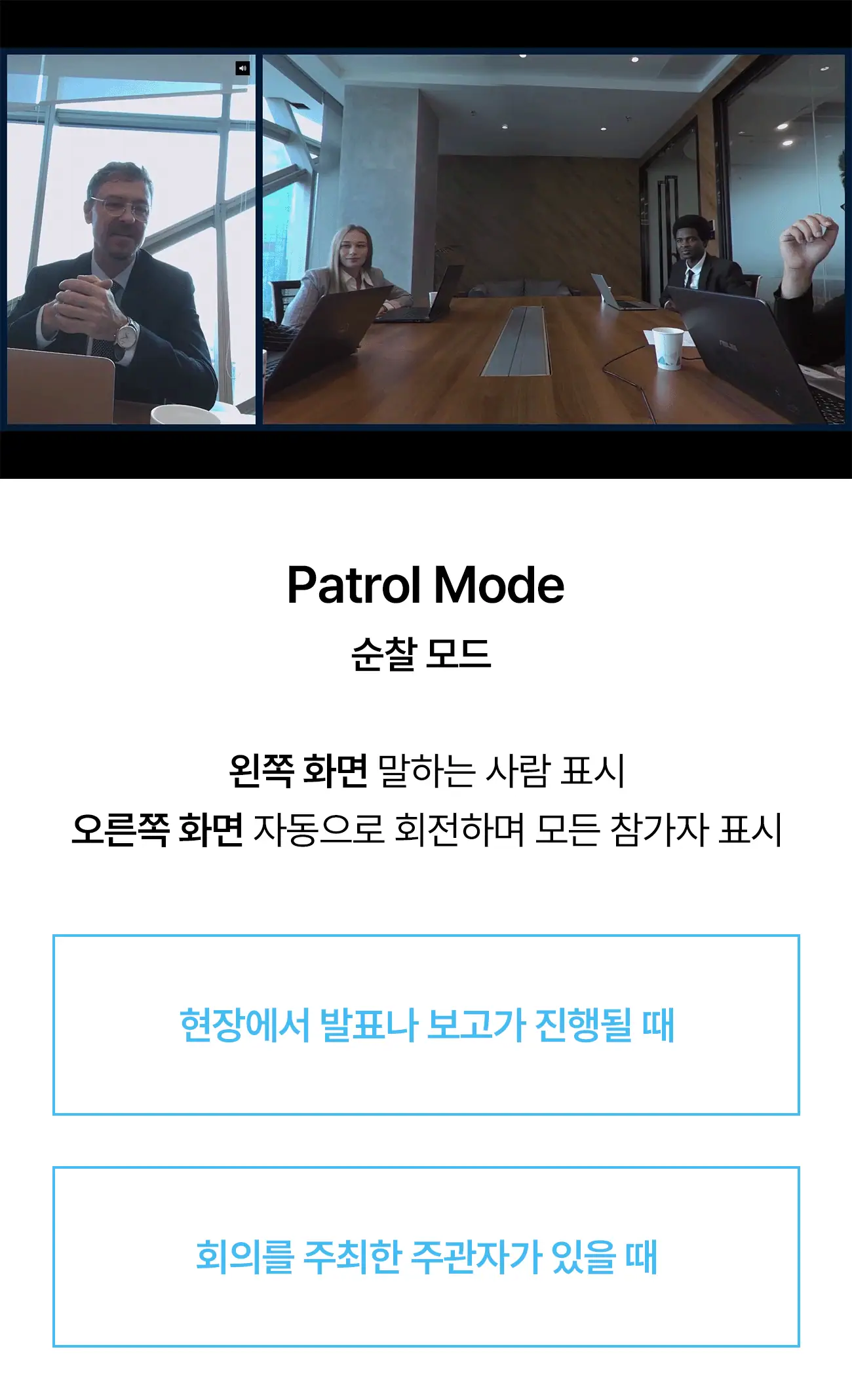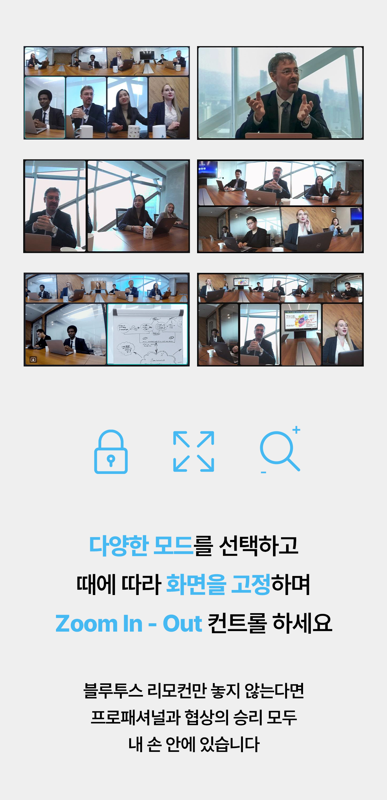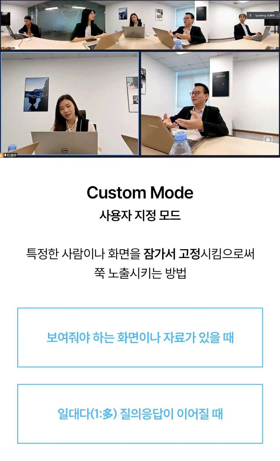 하단은 참석자들의 클로즈업을 보여줄 수도 있죠
