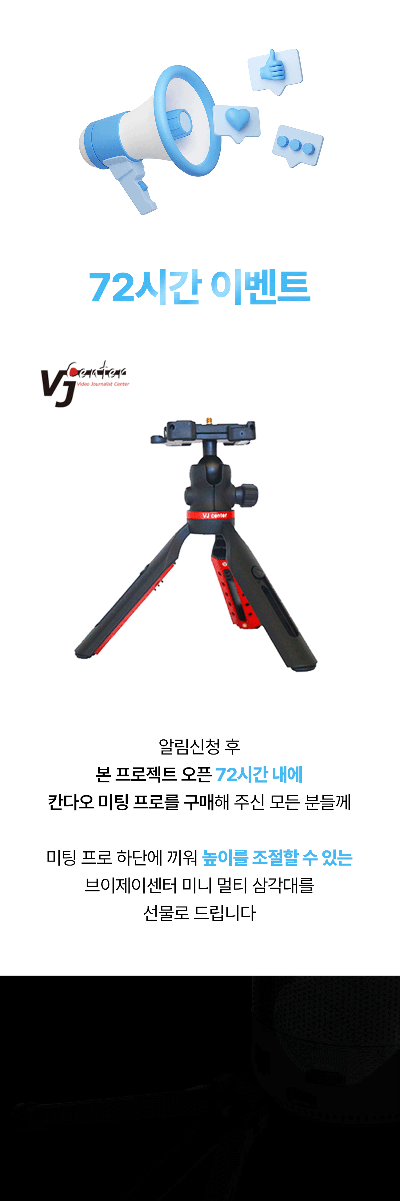 브이제이센터는 앞으로도 뉴미디어 기술의 개발에 집중하려 합니다. 서포터님들의 소통 환경이 공간을 뛰어넘어 더 넓어질 수 있도록요. 칸다오 미팅 프로는 이를 위한 첫 시작입니다.