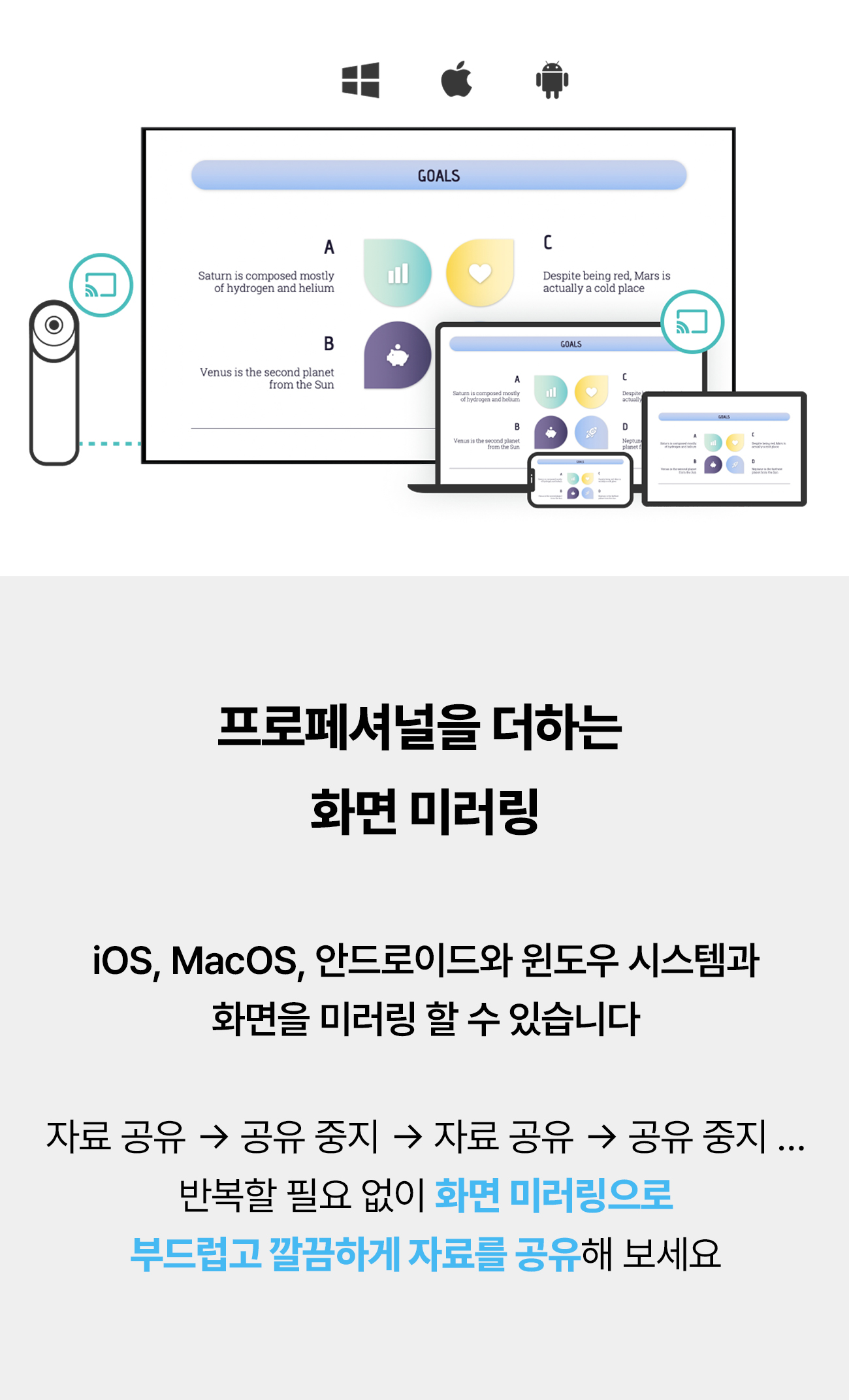 기본 구성으로 포함된 블루투스 리모컨만 있다면 전원 조작부터 소프트웨어 전환, 화면 모드 전환, 화면과 볼륨 조절, 녹화까지 모두 할 수 있으니까요.