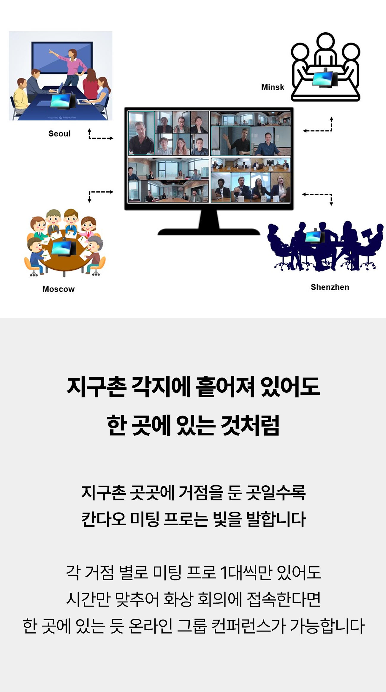 지금까지 우리는 물리적으로 같은 공간에서, 바로 눈 앞에 상대방을 둔 만남을 베이스로 소통을 해왔습니다. 하지만 시대는 바뀌었고, 전세계 사람들을 만나 소통하는 게 보편화 되었습니다.