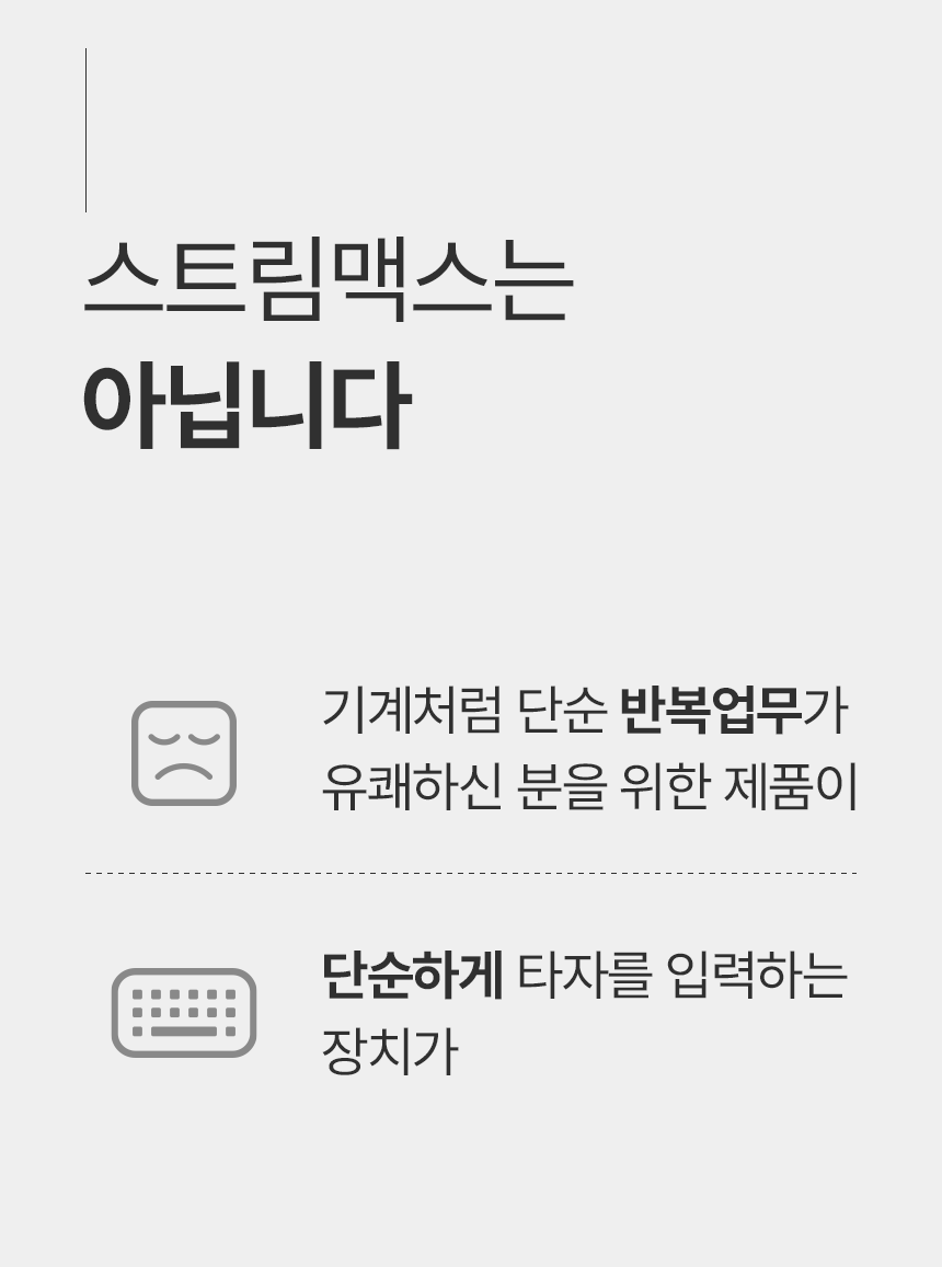 좀 더 직관적인 방법은 없을까? 더 똑똑한 방법은 없을까 고민끝에 나온 제품이 스트림 맥스입니다.