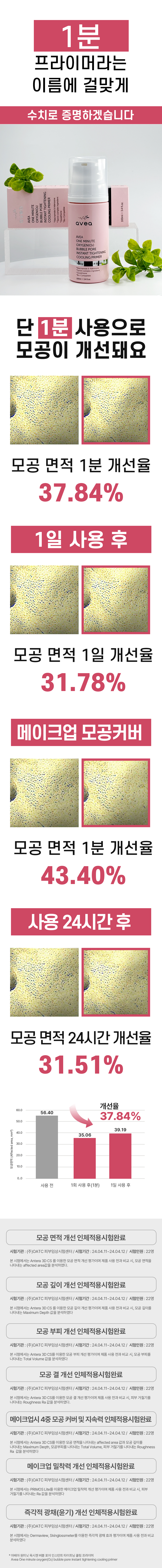 Primer that improves pores by up to 43.40% in just "1 minute"! Clinically tested to refine pore size depth volume and texture in one minute daily. Fine bubbles perfectly cover pores for a glass-like complexion.