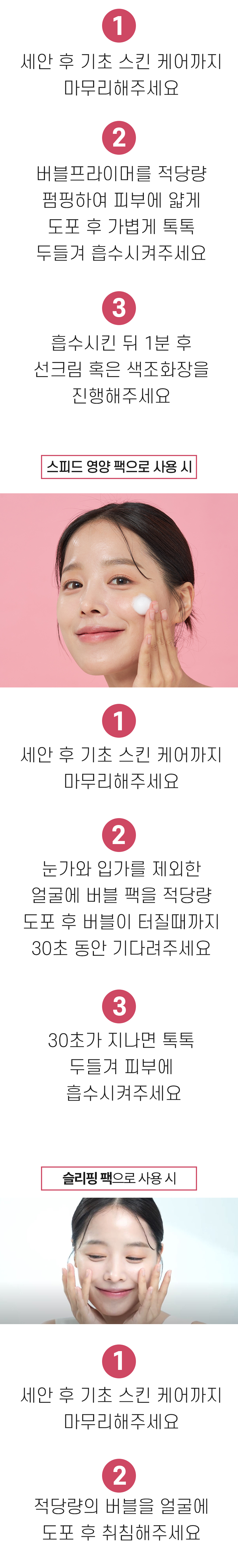 중요한 날 하루 전 날 얼굴에 버블을 듬뿍 올려놓고 주무시면 슬리핑 팩으로도 사용이 가능합니다.