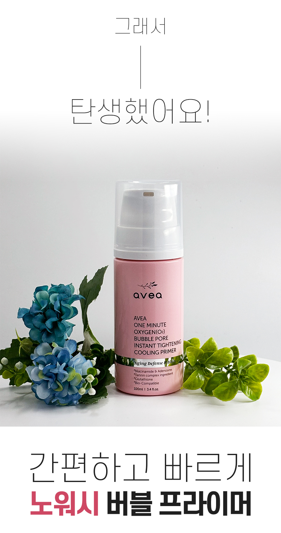 아베아 1분 버블 프라이머는 워터블한 버블 제형으로