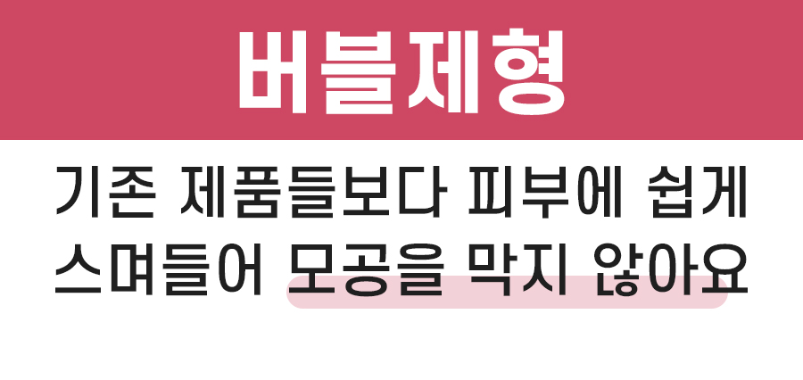 그러려다 보니 일반 제품들과 같은 제형으로는 힘들겠어서 바로 피부에 흡수시킬 수 있는 버블 제형을 선택하였습니다.