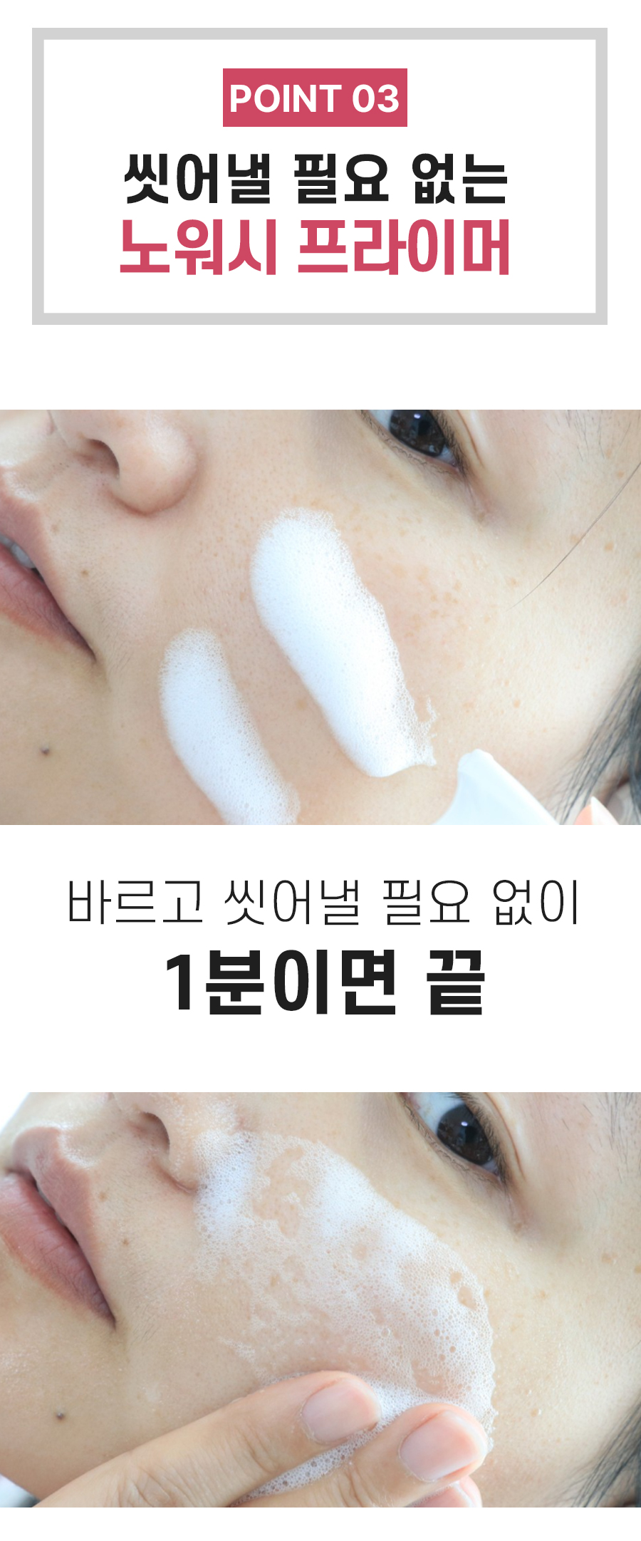 버블 제형이지만 씻어낼 필요 없습니다. 두들겨서 흡수시켜 주세요!
