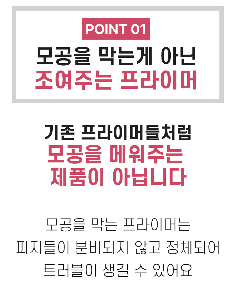 모공, 주름, 여드름 등의 피부 요철을 메워 매끈하게 정돈하고 화장을 잘 달라붙게 하여