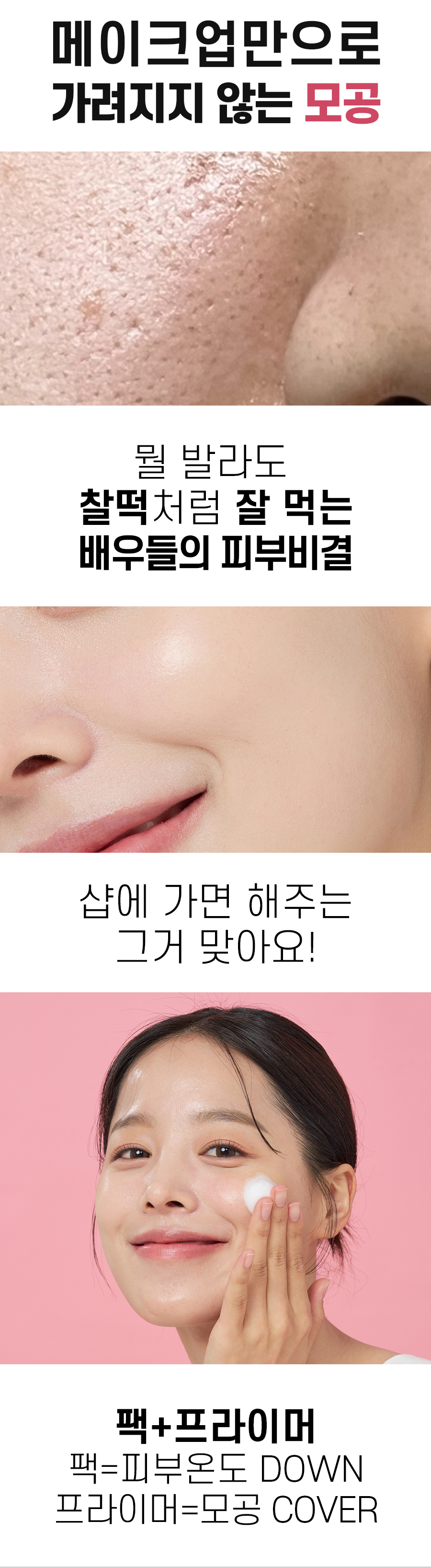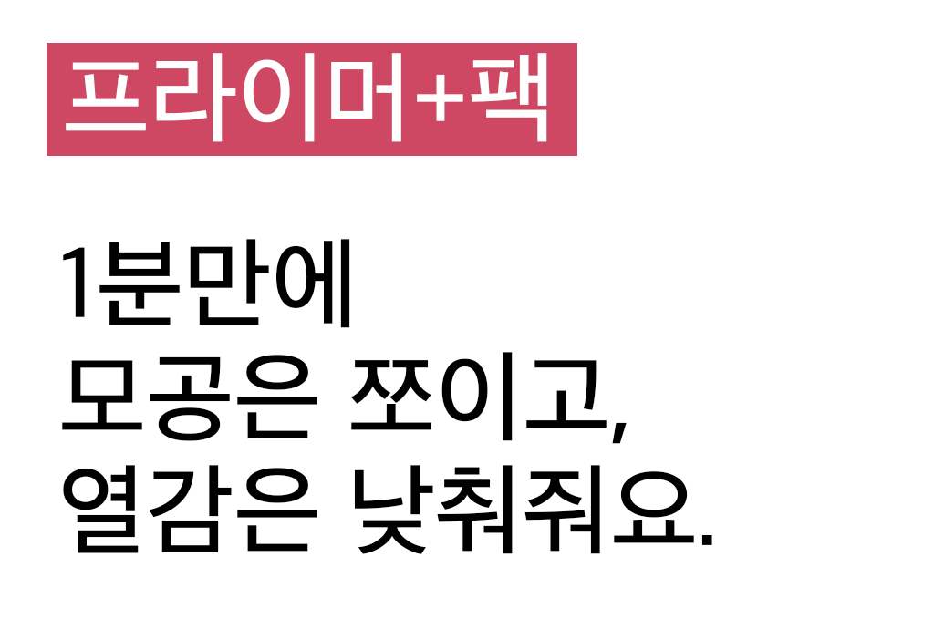 근데 이제 모공을 가리는 것뿐만 아니라 모공의 크기와 면적들을 줄여야 하는 원초적인 문제까지 케어해주는 제품으로 들고왔어요.ㅎㅎ