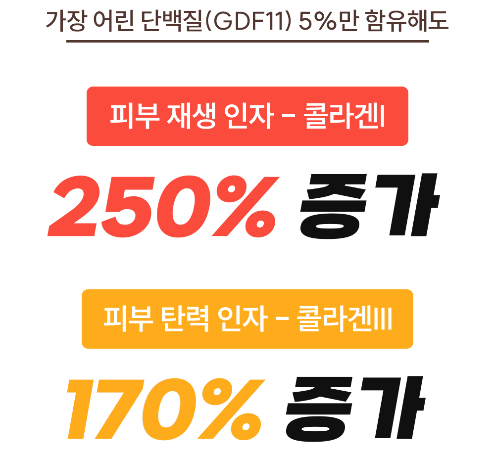 그 결과 가장 어린 단백질인 GDF11 15% 함유 시 가능하다는 것을 알게 되었죠