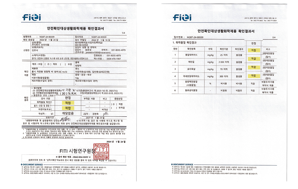 무해성 검사 적합 판정을 받아 안전합니다.