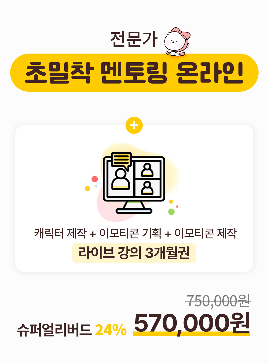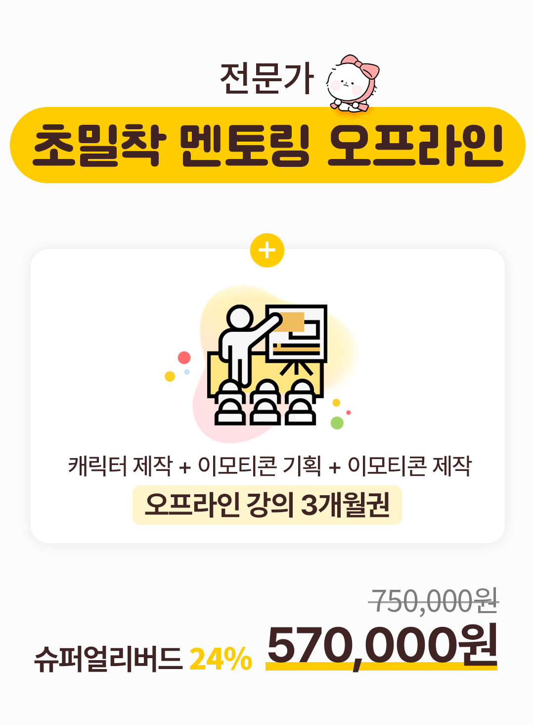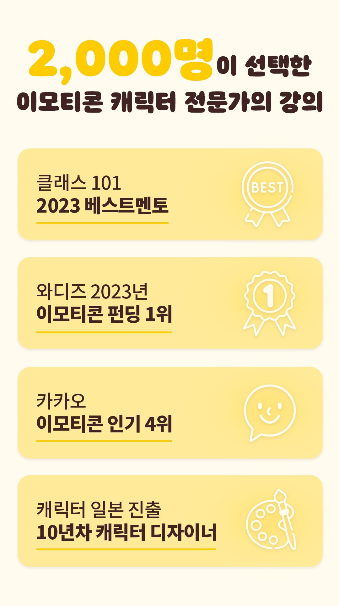 이런 경험을 이모티콘을 처음 시작하시는 분들께도 알게 해드리고 싶었고,  창작자들이 제가 돌아온 먼 길을 겪지 않도록!  3,4년이 걸릴 수 있는 시행착오를 단축시켜 빠르게 성장할 수 있도록 해드릴거예요.