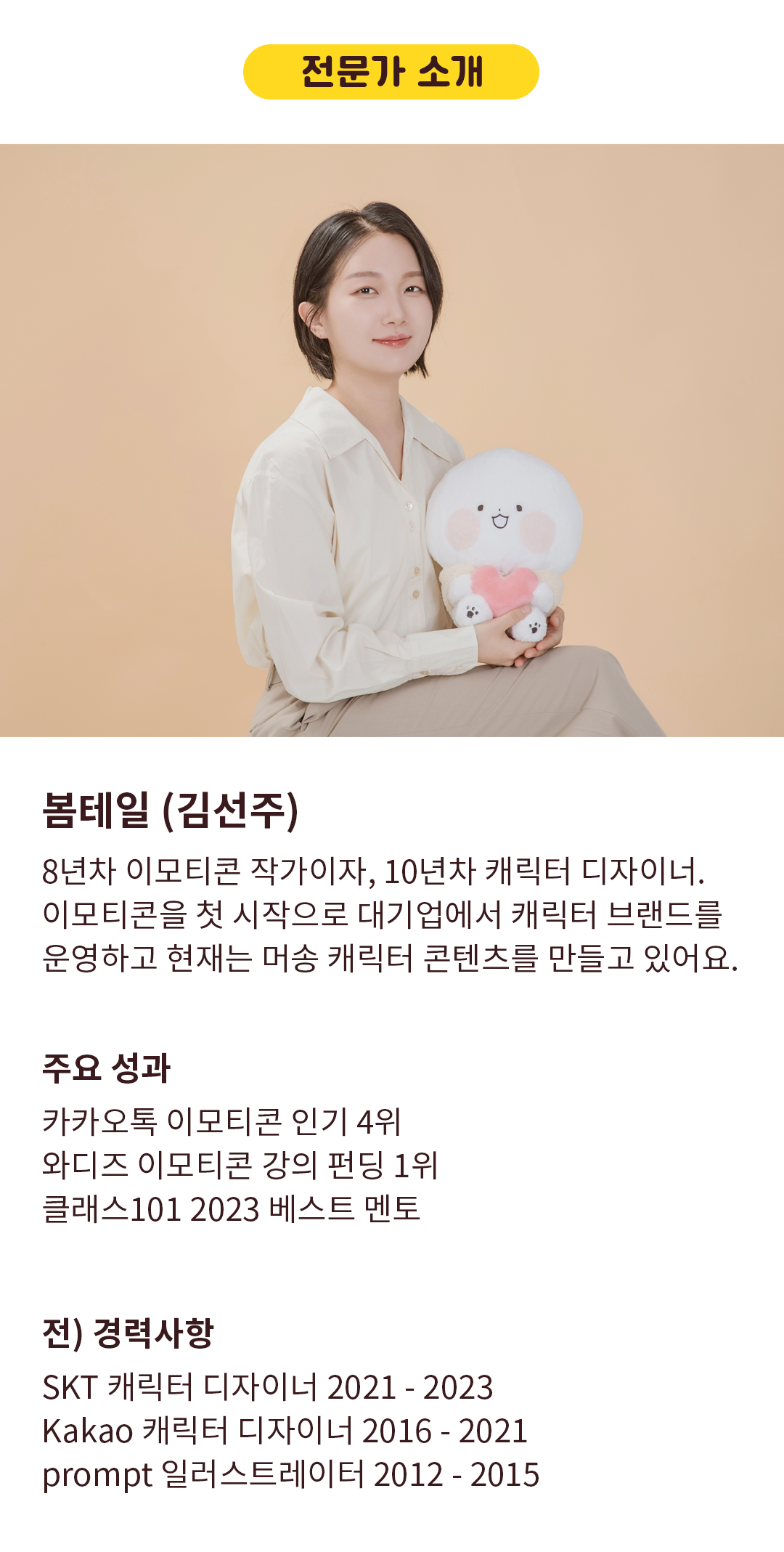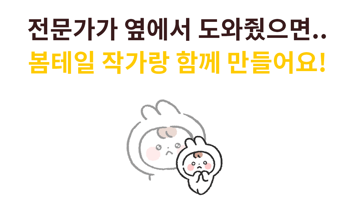 “잘 팔리는” 이모티콘을 만드는 카카오톡 이모티콘 인기순위 4위 이모티콘 작가이자, 캐릭터 디자이너 봄테일입니다.