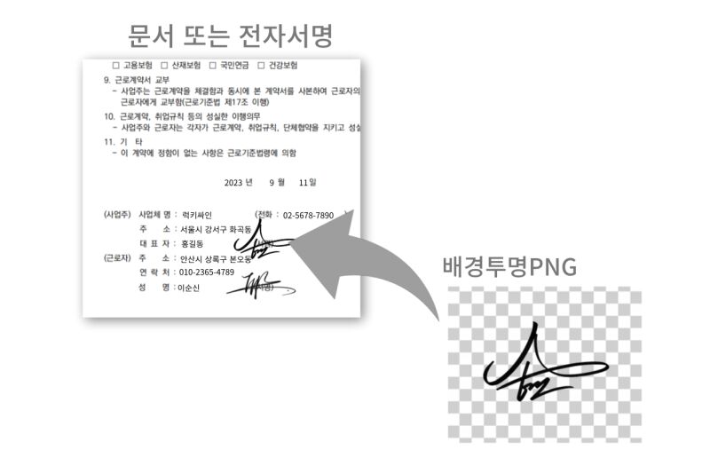 배경이 투명한 PNG파일은 문서작성 및 전자서명에 사용됩니다.