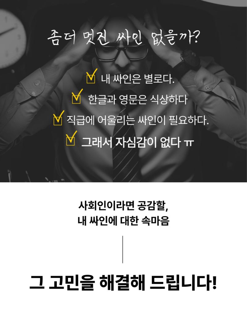 3가지 컨셉의 응용이미지는 명함 등에 싸인이 적용된 포토샵으로 일일이 제작된 가상의 컨셉이미지입니다. 그러므로 예쁘게 멋있게 보이고 싶은 곳에 사용하세요.
