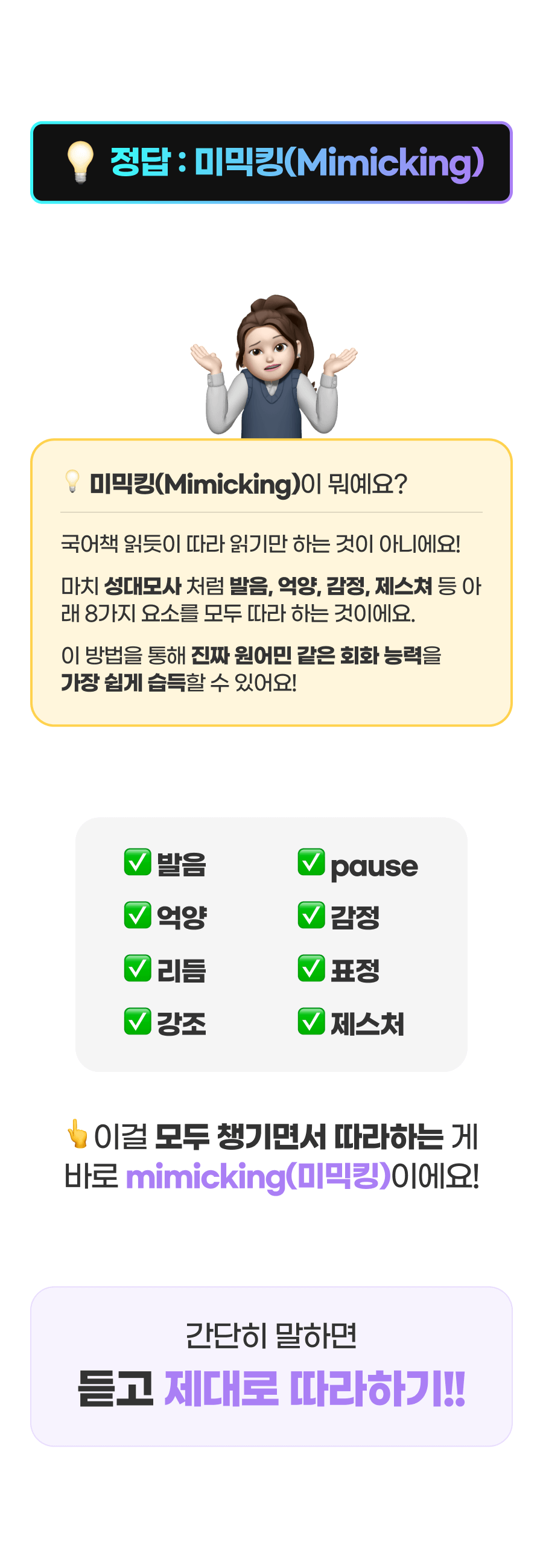 - 상황에 대한 이해를 하고 억양과 생각까지 그대로 “잘 따라해보는(mimicking)”