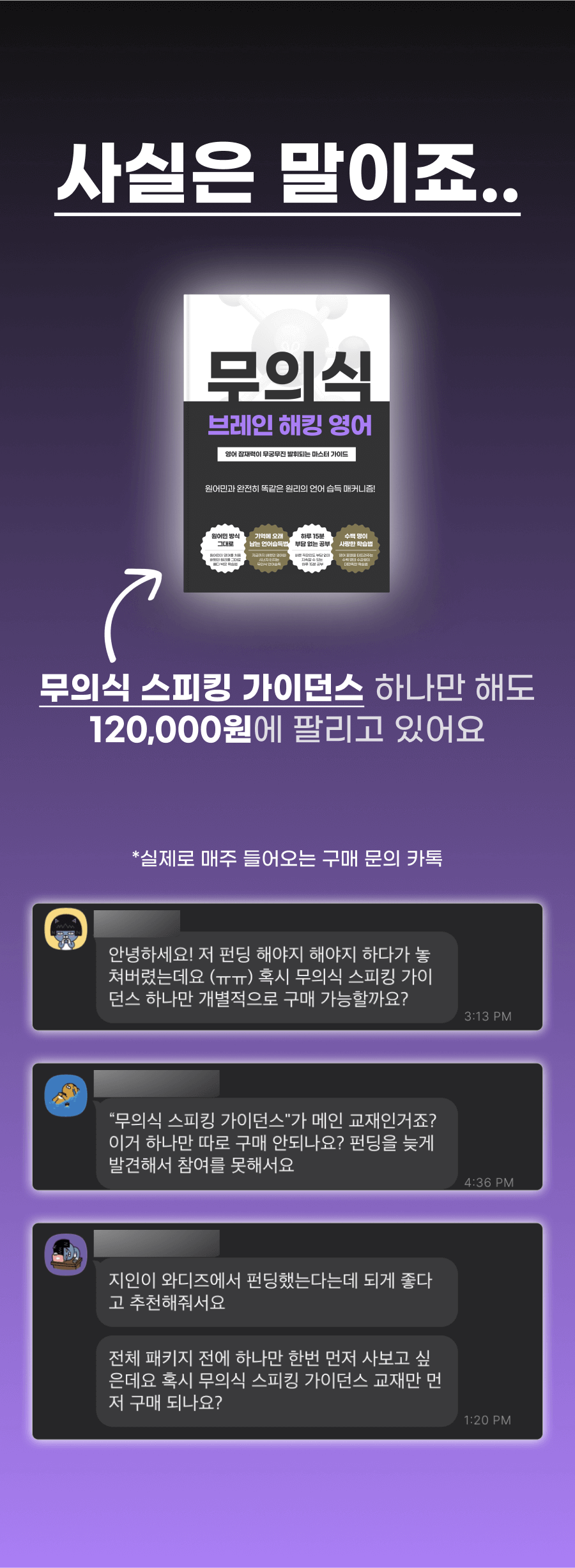 그 결과, 저만의 독특한 '무의식 영어 학습법'을 개발하게 되었습니다. 이 방법은 단기간에 영어 회화 실력을 획기적으로 향상시킬 수 있다는 것을 제 자신을 통해 증명했고, 이후 수강생들에게도 적용해 놀라운 효과를 보았습니다.