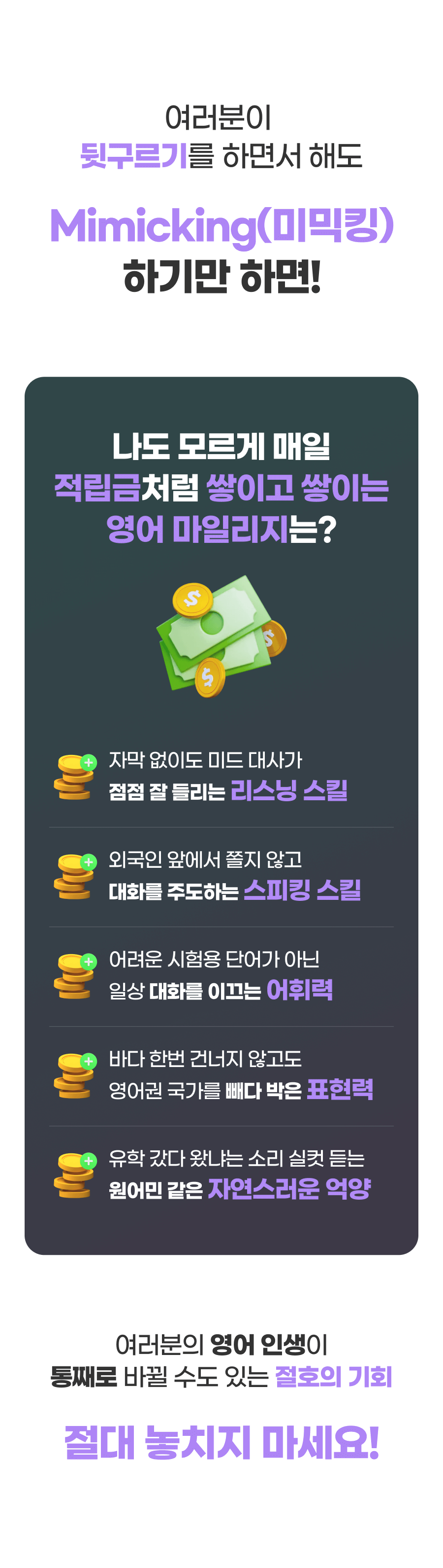 하지만, 지금이 어떤 영어 실력이든 2-3 단계는 남들보다 빠르게 확! 급성장시키는 방법은 바로 여기에 있어요!