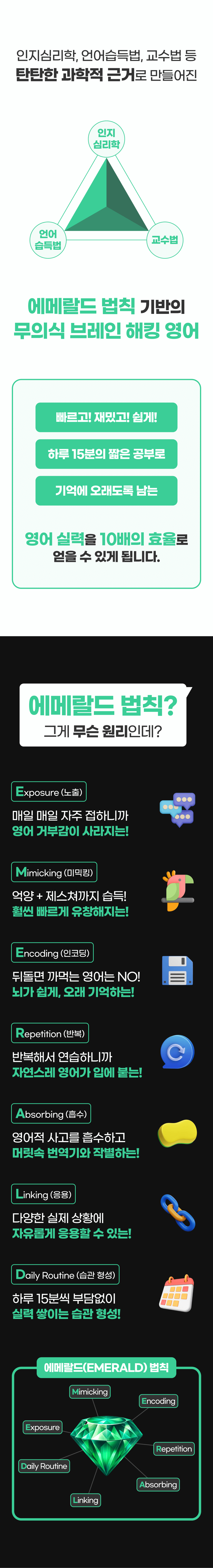 어떻게 영어를 ‘잘 배우는지’, 언제든지 쓸 수 있도록 어떻게 머릿속에 ‘잘 저장하는지’. 즉, EMERALD 학습법의 비밀까지! 전부 알려 드릴게요.