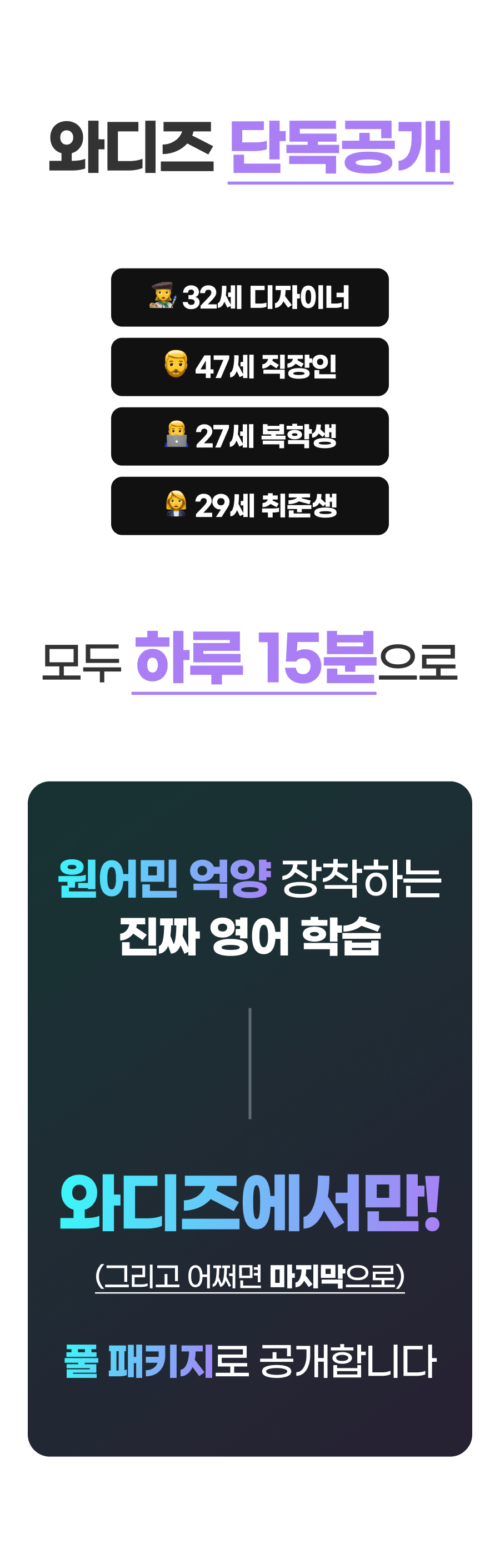 단어장만 외우다보니 단어를 실제와 다르게 발음하는 경우도 너무너무 많이 봤습니다. 굉장히 안타까웠어요. 엄한데 쓰는 그 시간과 그 돈이 제 것인것처럼 아까웠습니다.